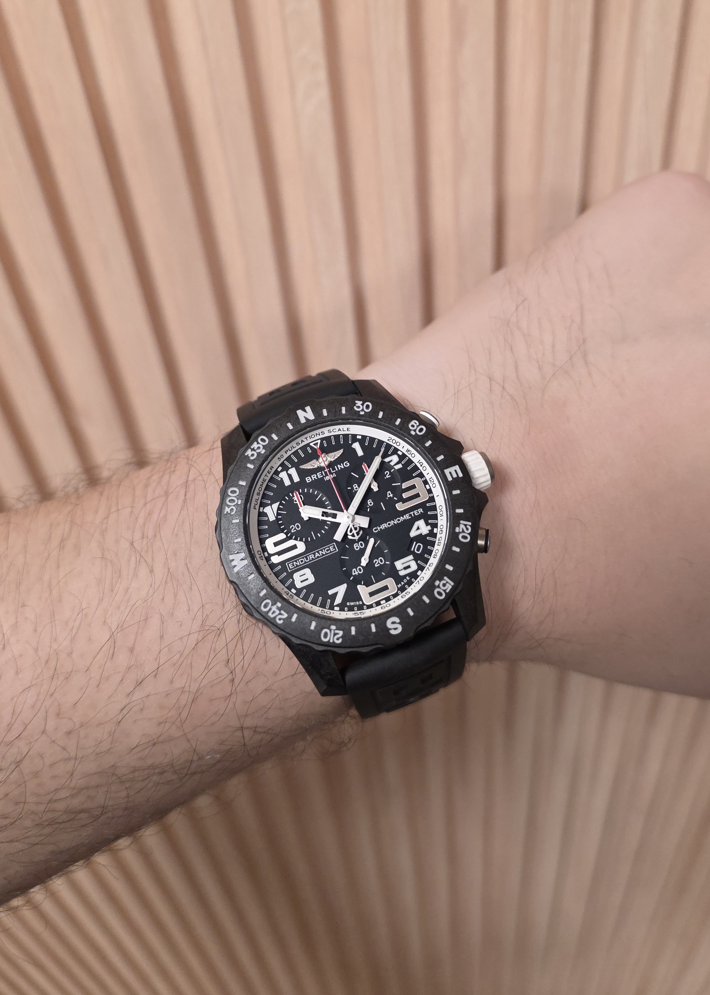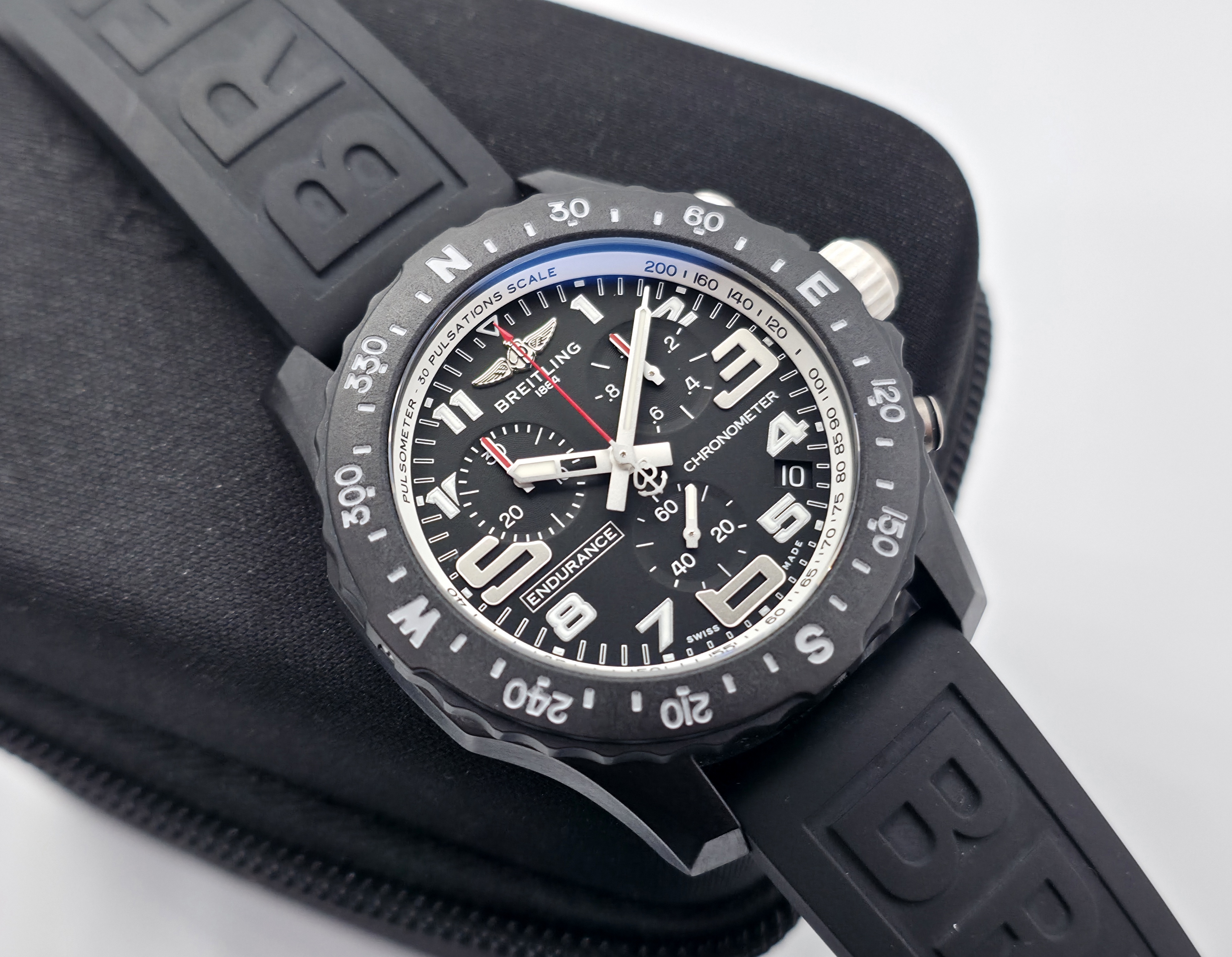 Breitling Endurance Pro 44. Kello, kortti ja Breitlingin huoltokotelo 03/2021. Todella kevyt Breitlight koppa, joka on mm. 3,3 kertaa kevyempi kuin titaani. Lisäksi se on magnetisoitumaton, lämpöstabiili ja allergisoimaton. Koneistona sykkii Breitling SuperQuartz (Calibre 82). Paristo vaihdettu 04/2026. Tästä sporttinen ja innovatiivinen toolwatch! Ovh. 3600e