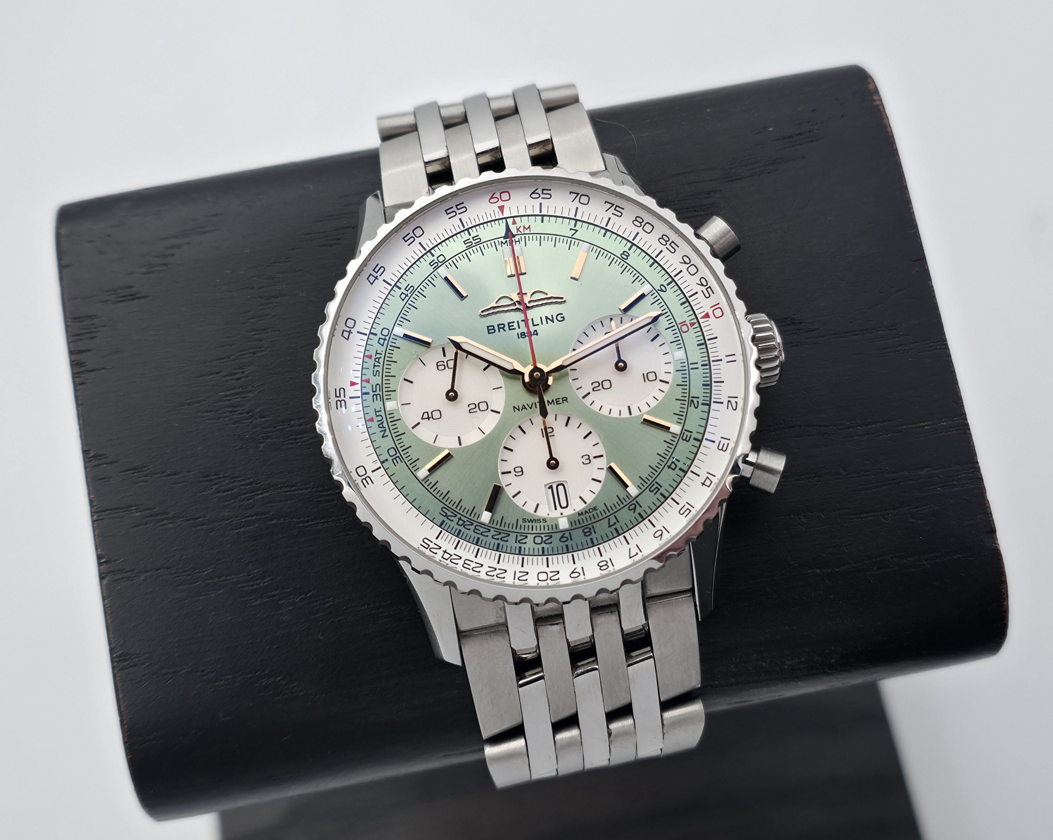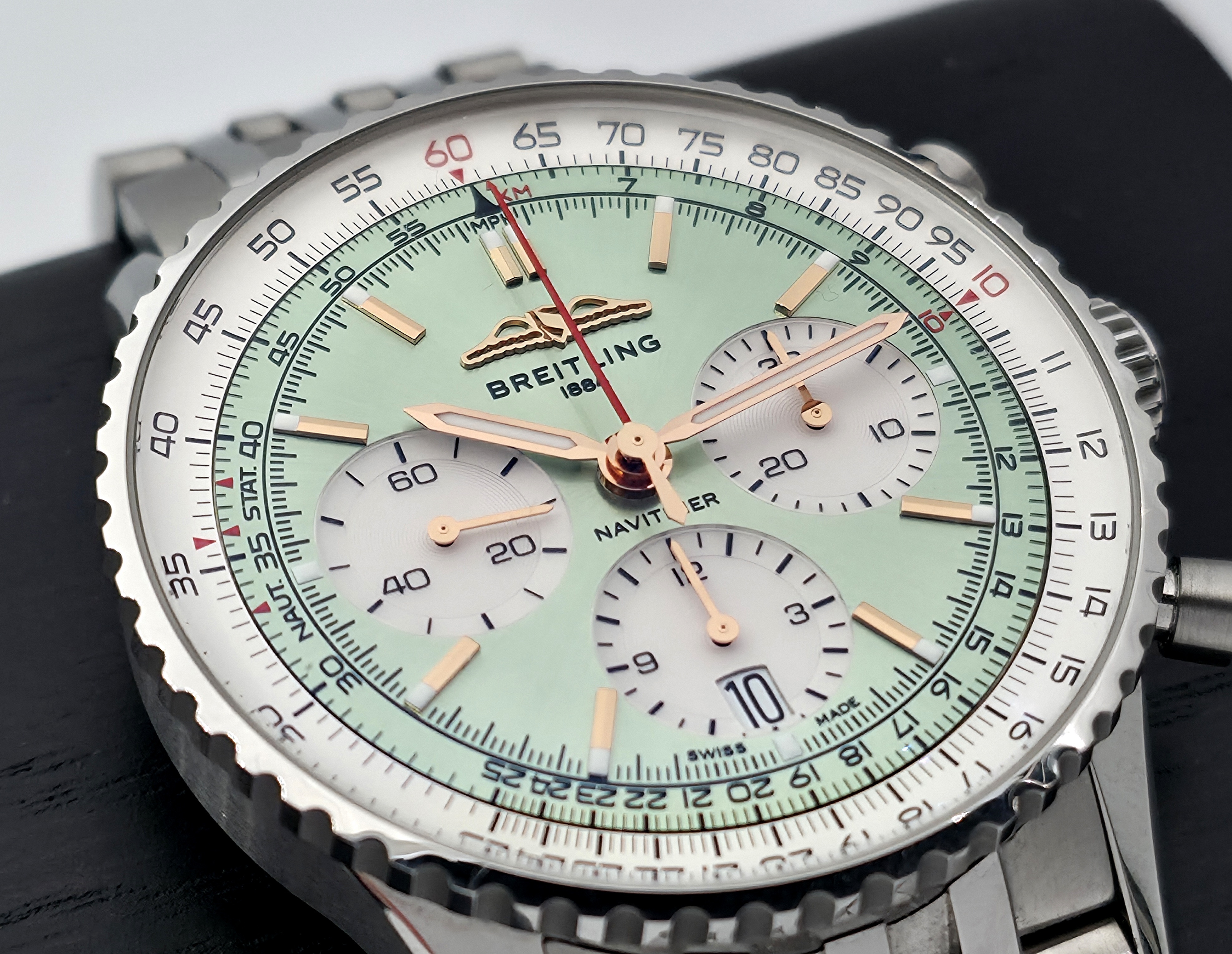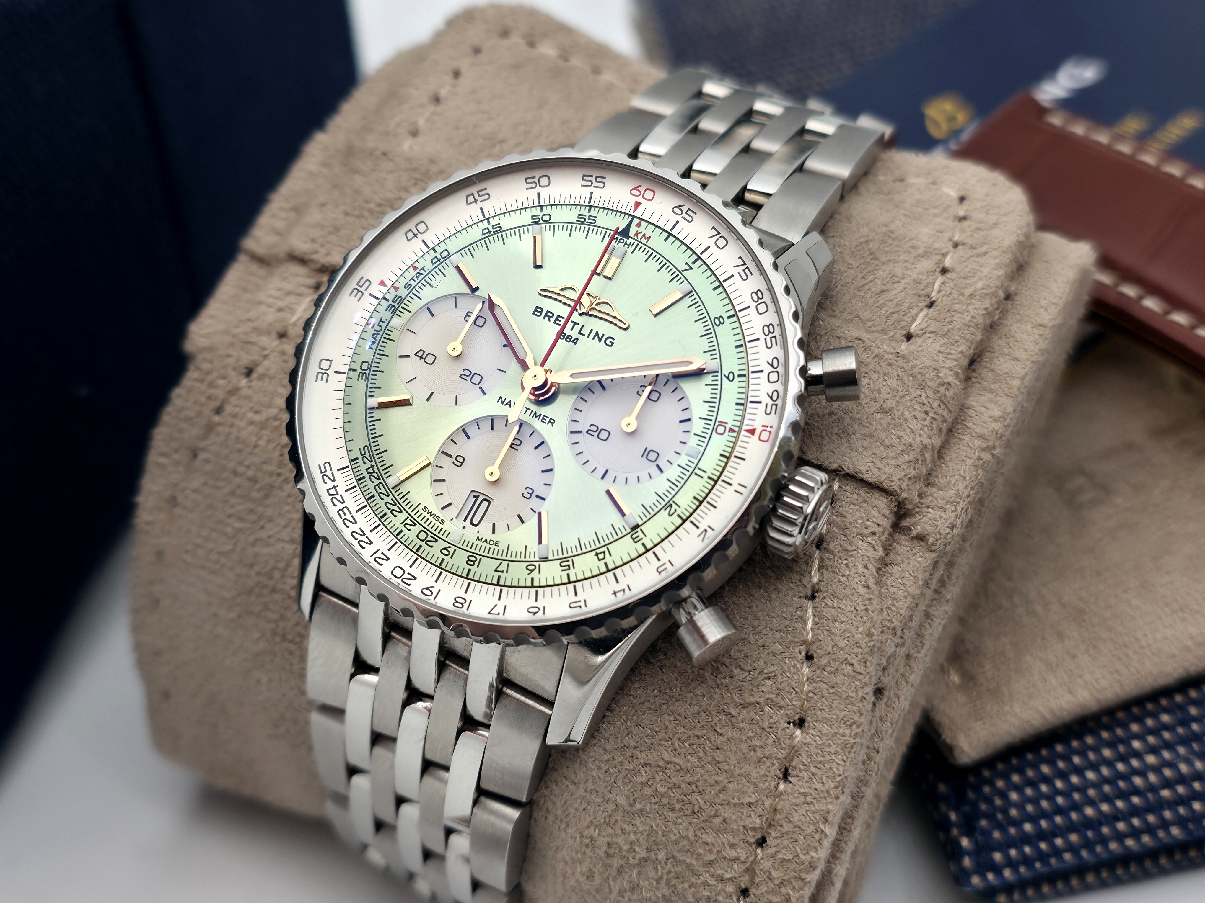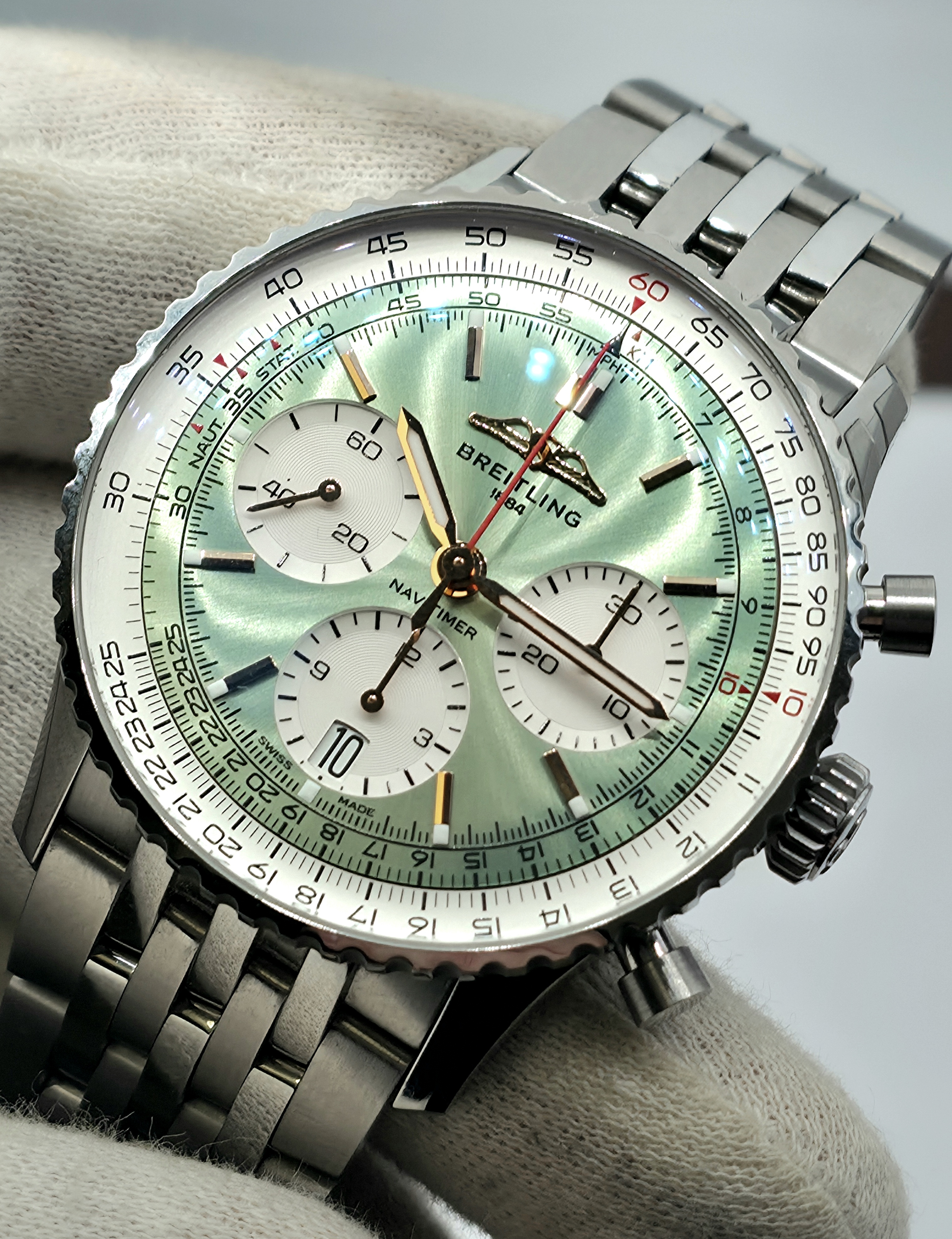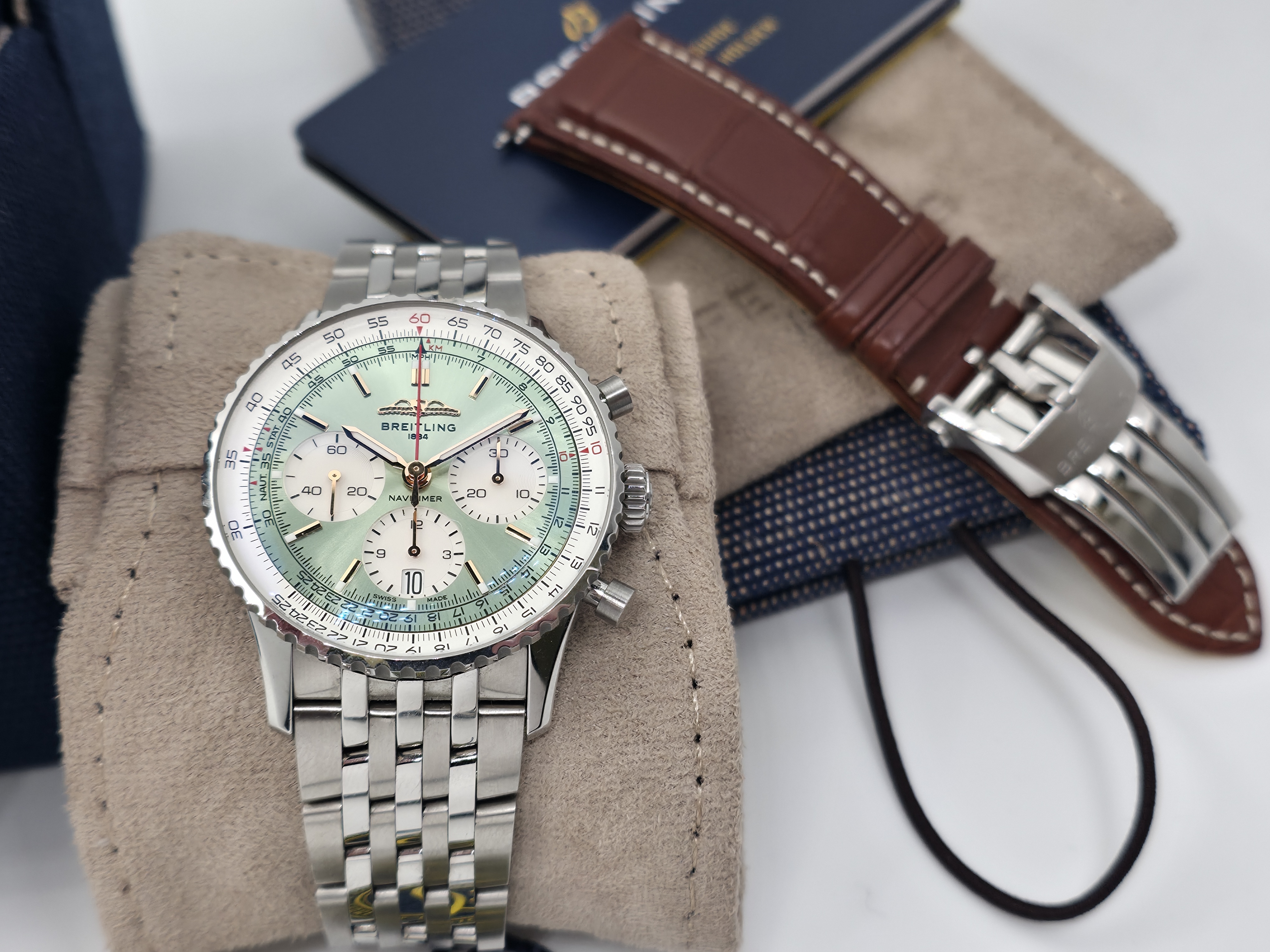 Breitlingin upean klassikko mallin, Navitimerin uusin versio! Todella hieno ja pirteä Mint Green taululla oleva malli. Fullset 04/2025. Mukaan lisäksi erikseen ostettu Breitlingin nahka linkkululolla. Valmistajan 5v takuu voimassa aina 04/2030 asti. Ovh. 9850e.