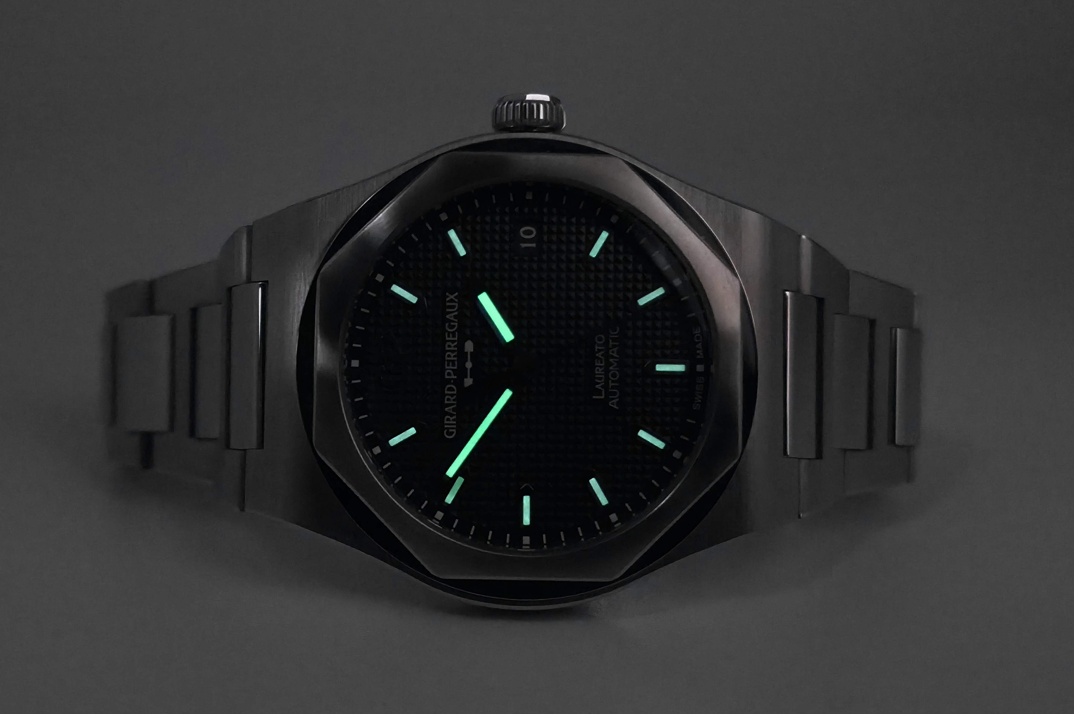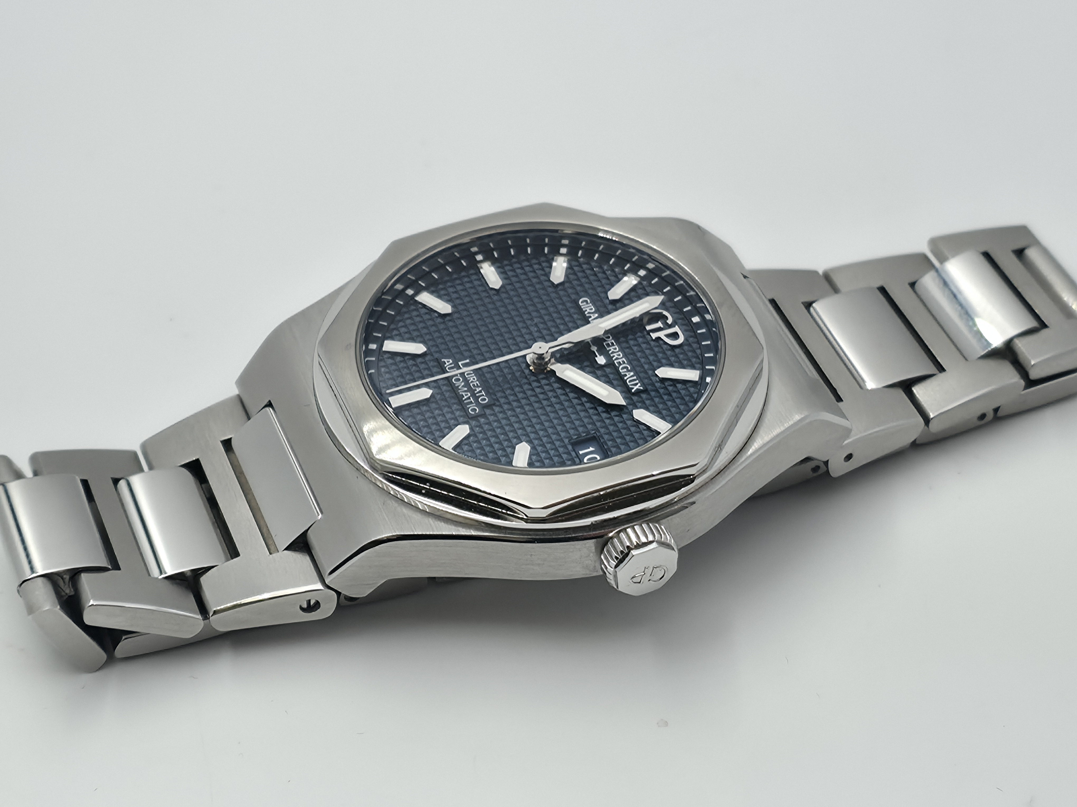 Tyylikäs Girard-Perregaux Laureato Midnight Blue. Yksi sporttiluksus-kategorian hienostuneimmista malleista. Ikoninen kahdeksankulmainen bezel, integroitu ranneke ja “vohveli” -kuvioitu taulu tekevät tästä ajattoman mutta modernin kokonaisuuden. Kellossa Girard-Perregauxin oma in-house GP03300 automaattikoneisto, 18k kultaisella vetopainolla. Kello on erinomaisessa kunnossa. Fullset 06/2025 ja 5 vuoden tehdastakuu voimassa aina 06/2030 asti. Ovh. 15 700e