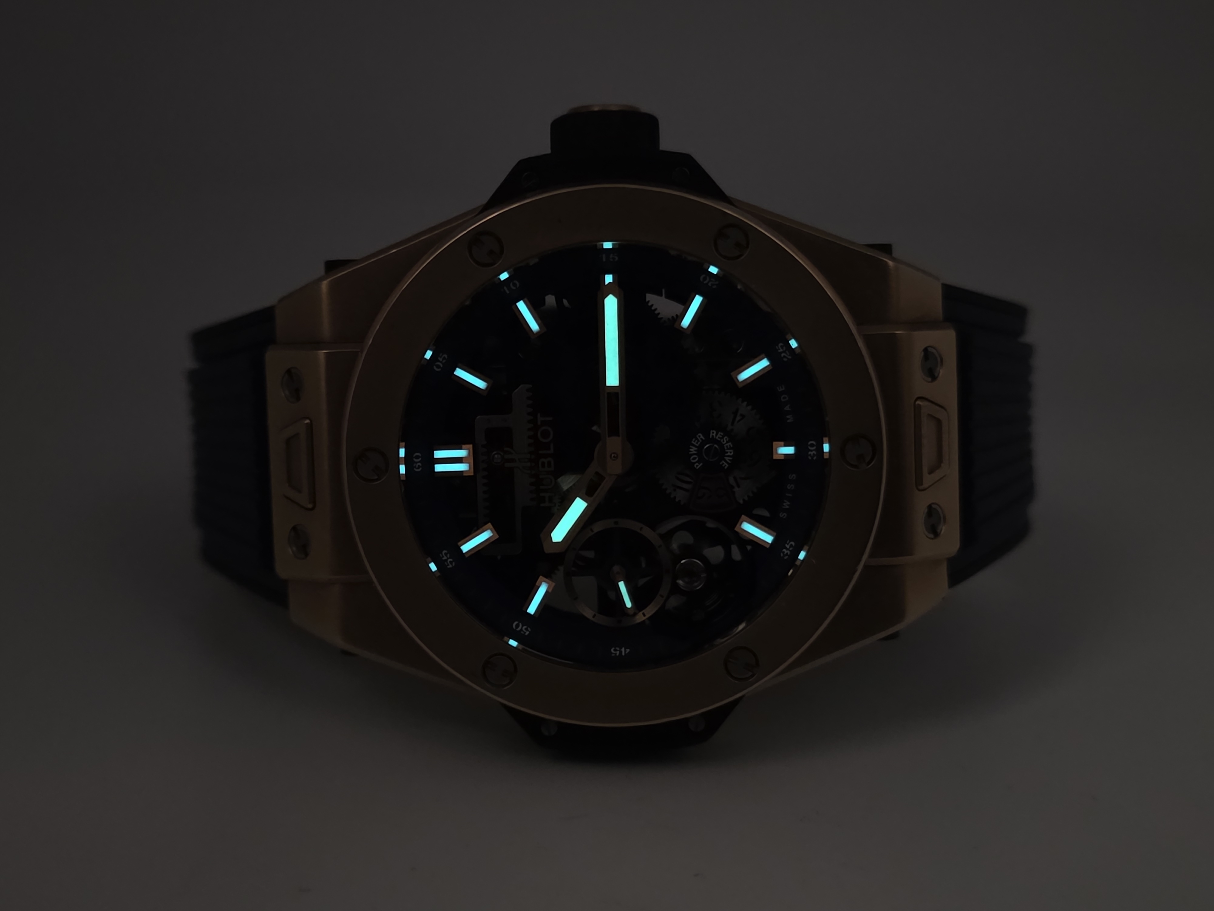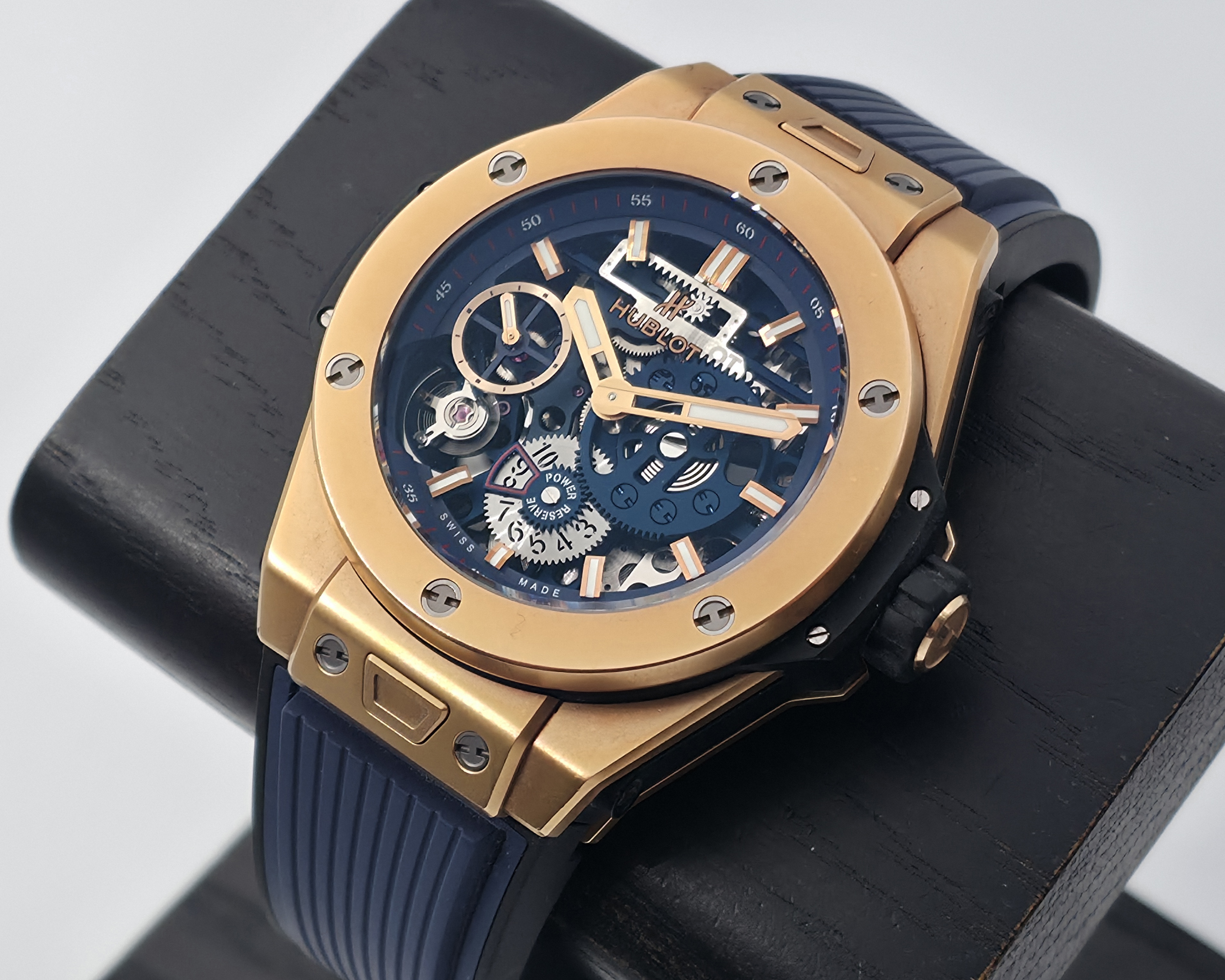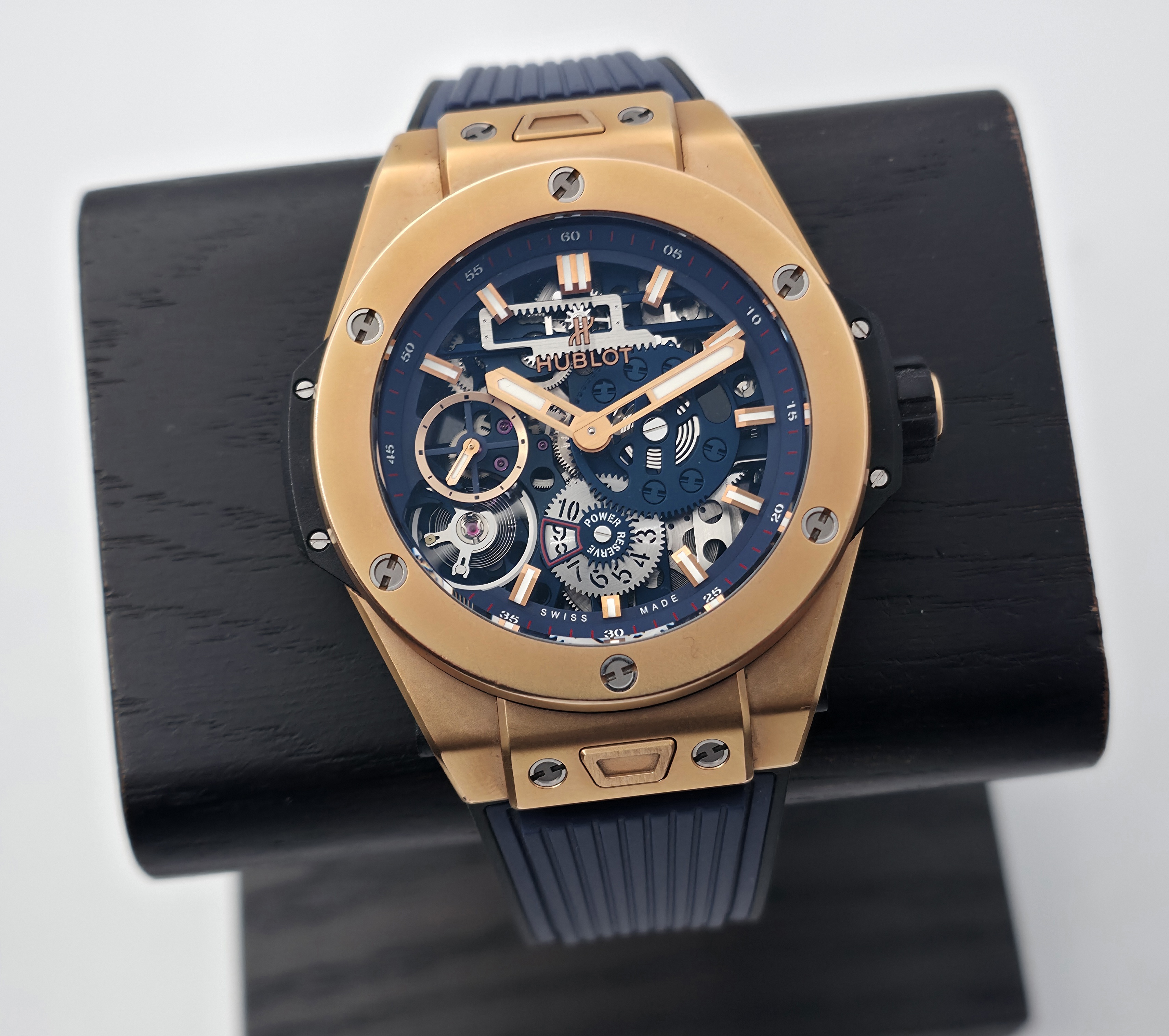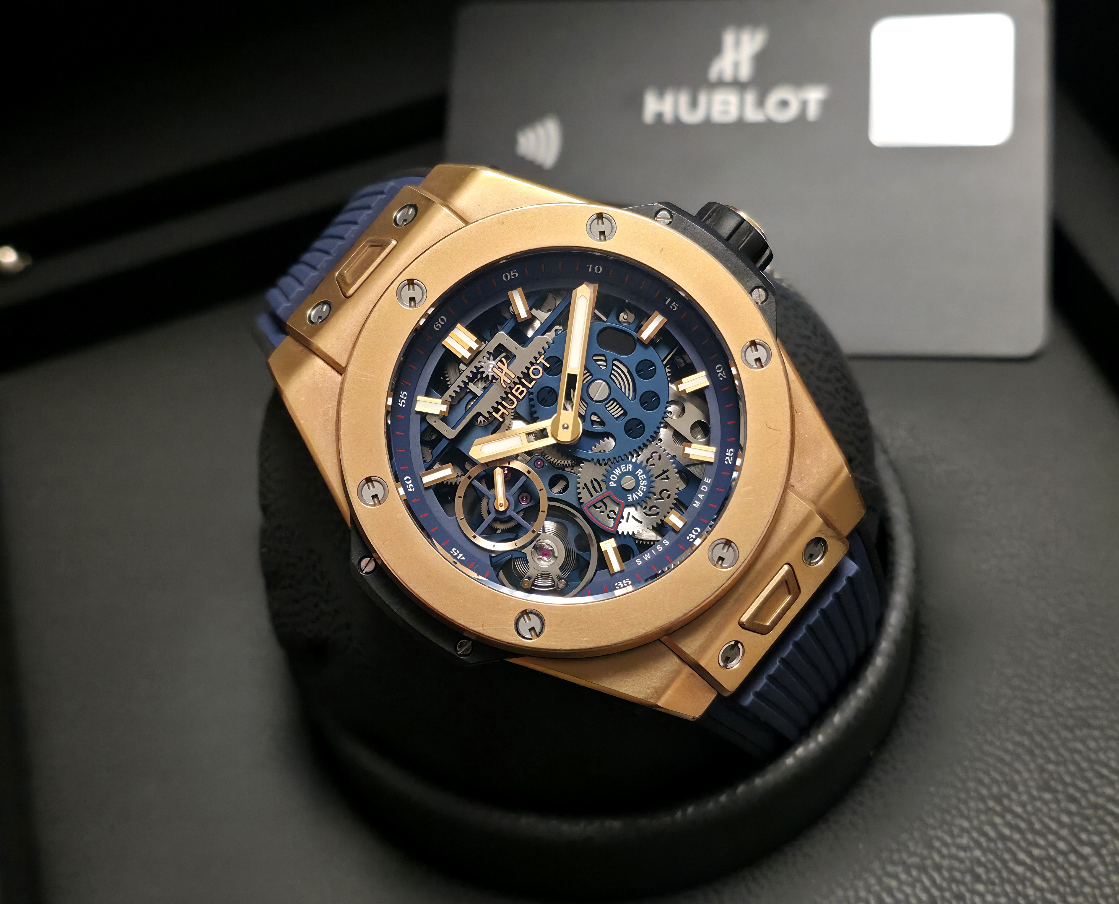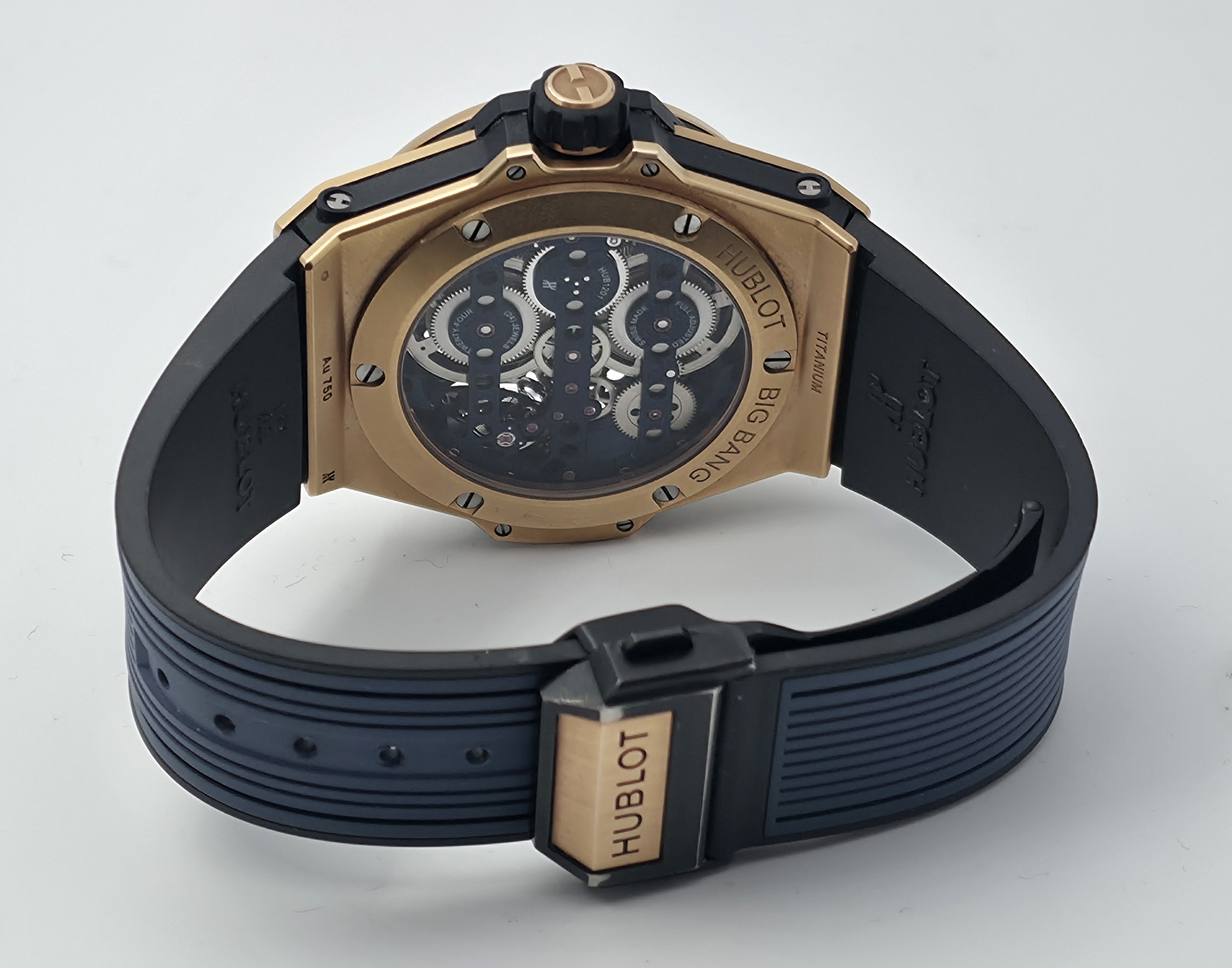 Hublotin erittäin näyttävä 18k mattakultainen Big Bang MECA-10 -malli. Kellossa on upea skeleton-taulu ja kauniisti viimeistelty Meca-10-koneisto, jonka käyntivara on 10 päivää. Kyseessä on täysi setti 05/2018, ja kello on erinomaisessa kunnossa. Ovh. 49 500e