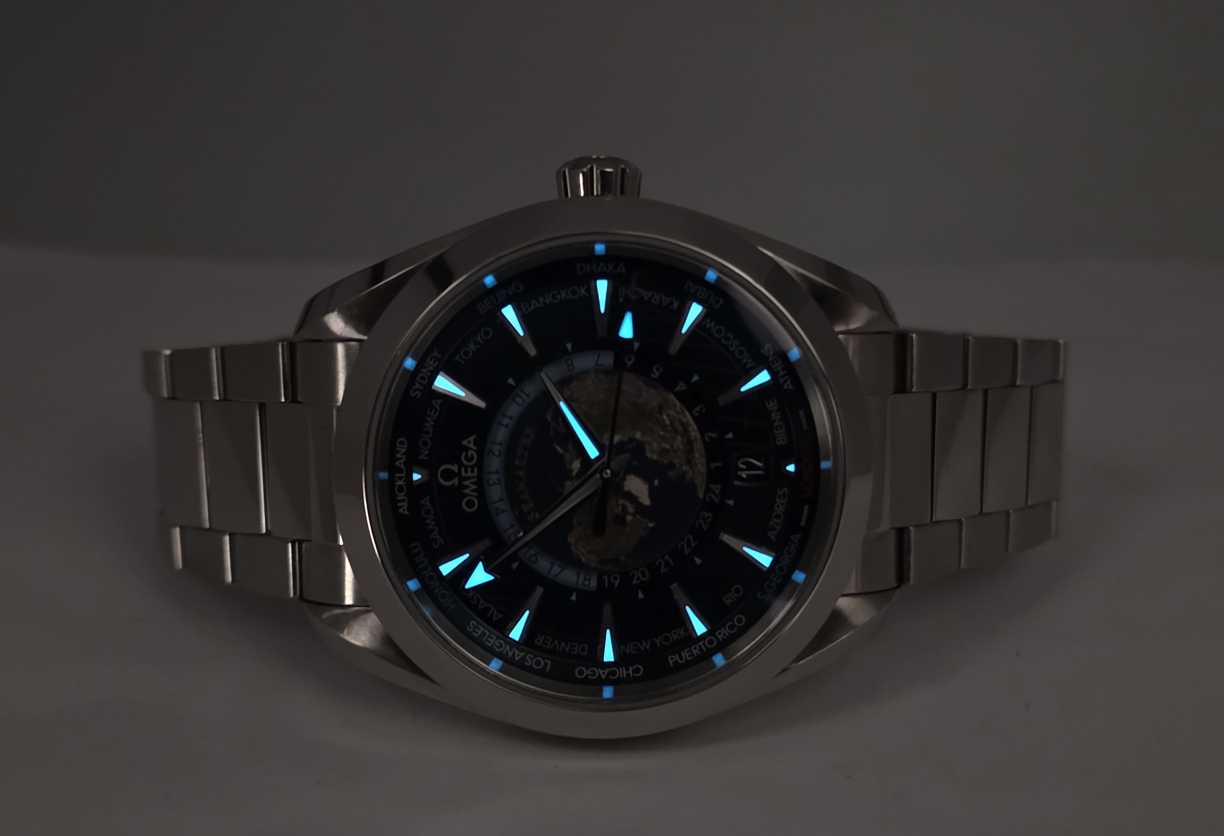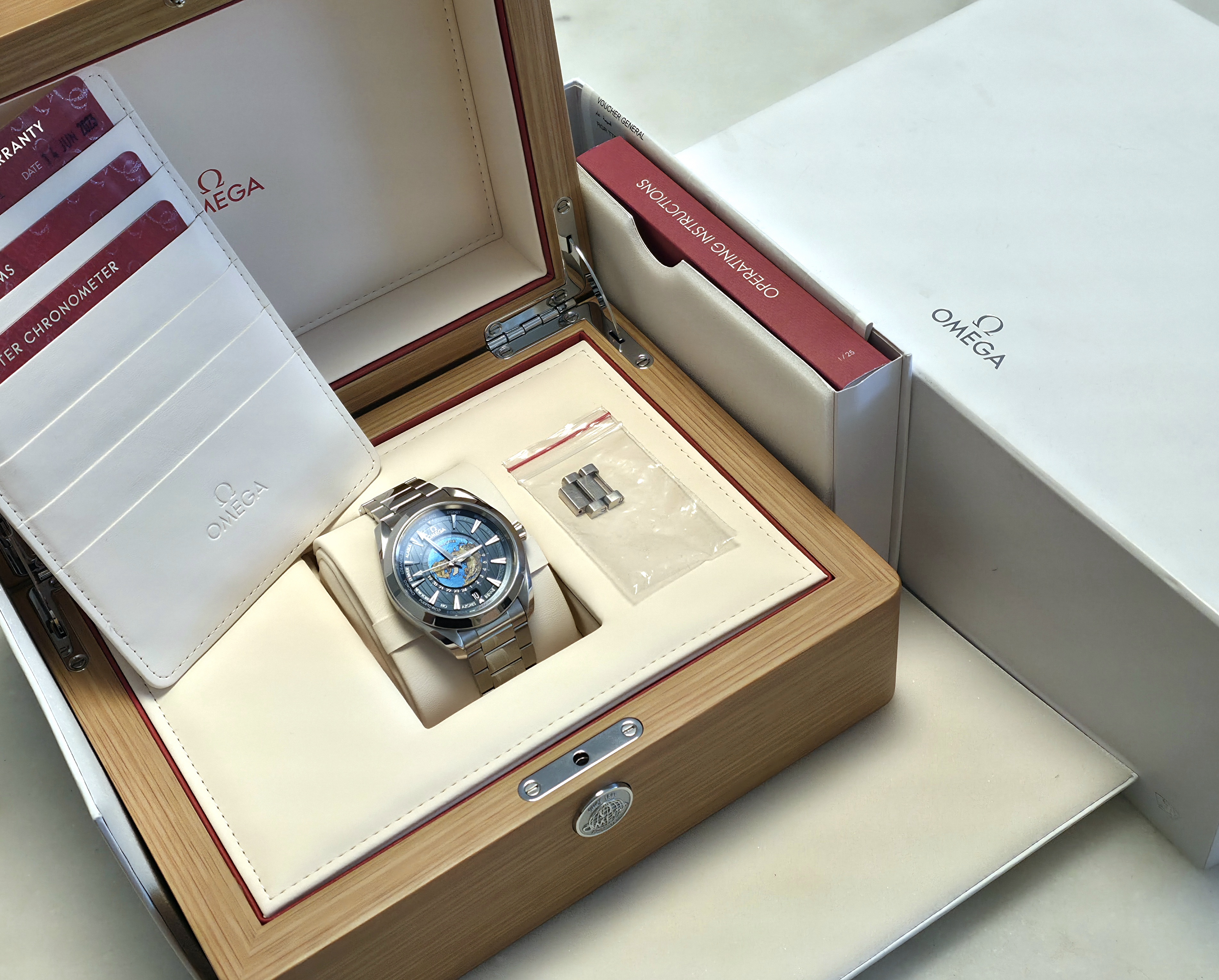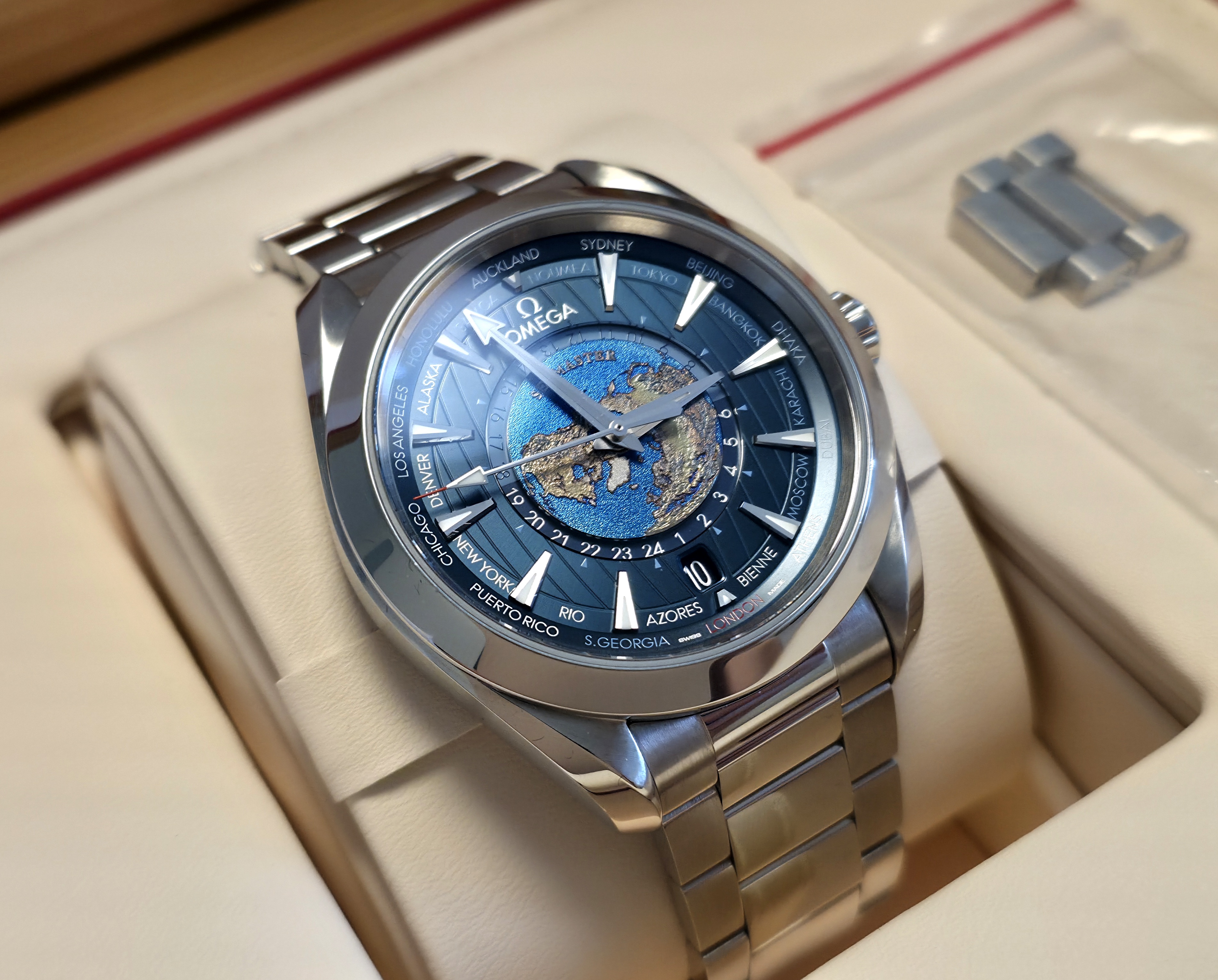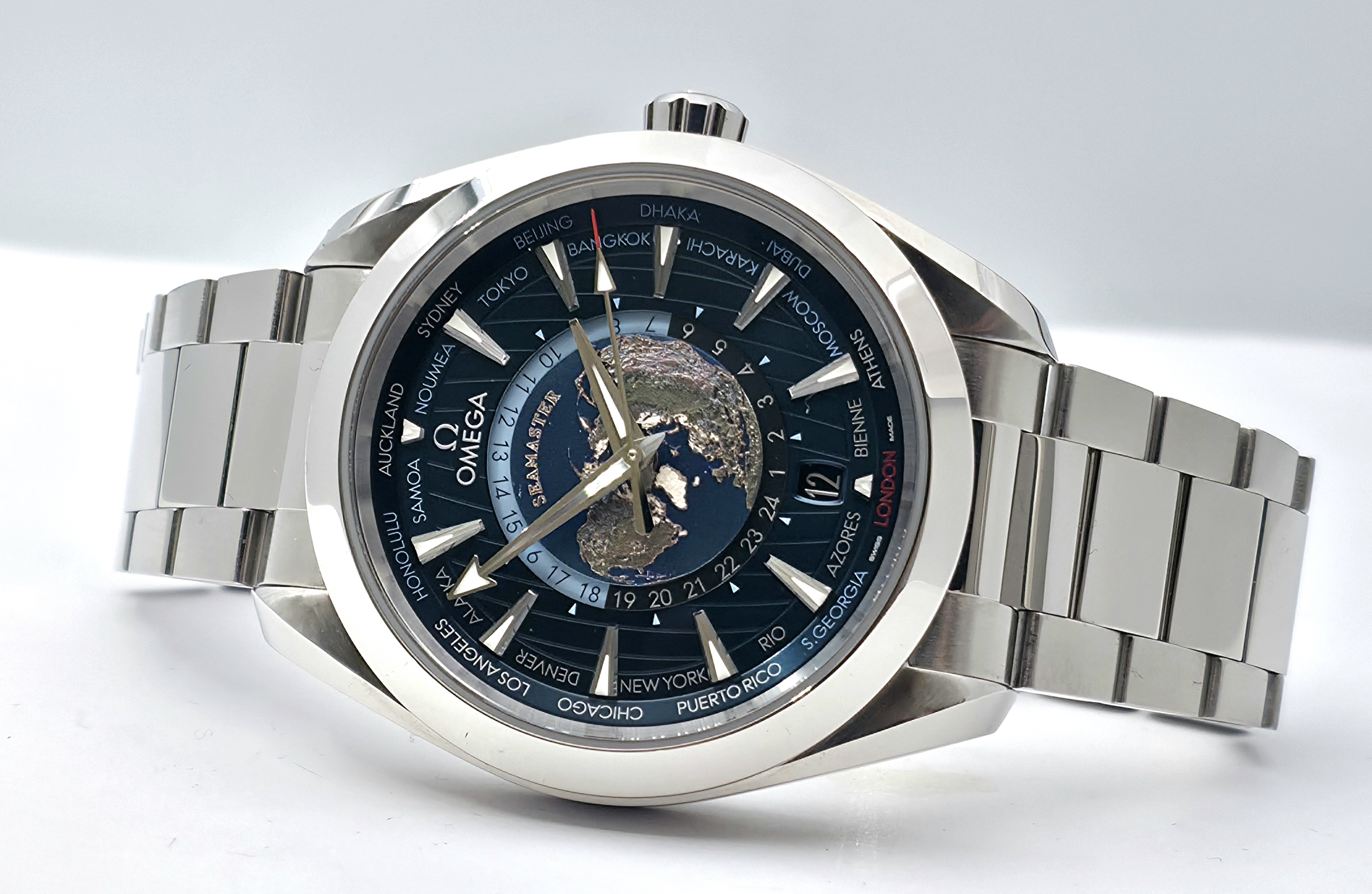 Seamaster Aqua Terra GMT Worldtimer 43mm, jossa on erittäin näyttävä ja yksityiskohtainen kellotaulu sekä maailmankello-toiminto. Kyseessä on täysi setti 06/2023, ja siihen on myönnetty viiden vuoden tehdastakuu (06/2028). Kello on hyvin siistissä kunnossa. Tästä erittäin vaikuttava Omega-malli. Ovh. 11 400e