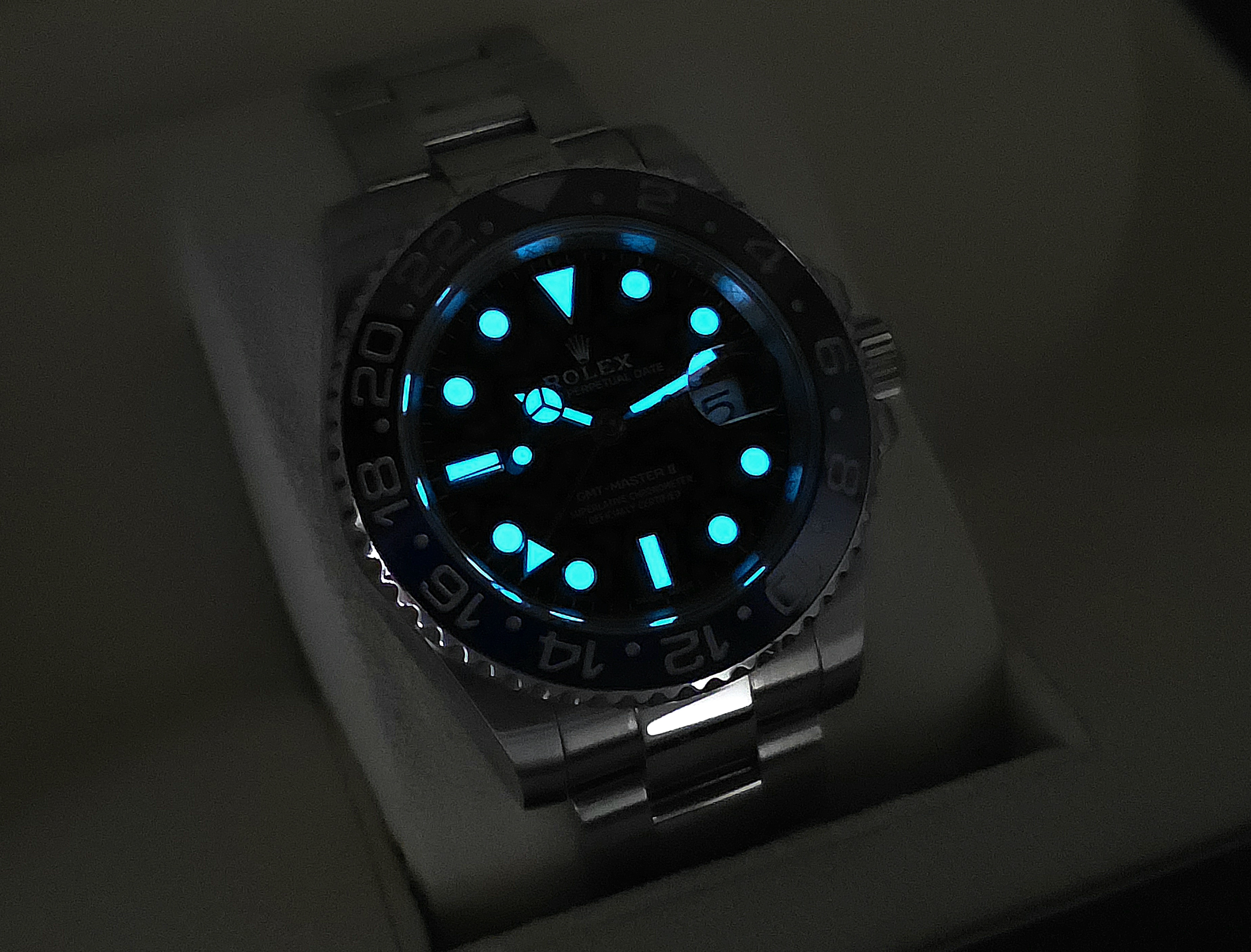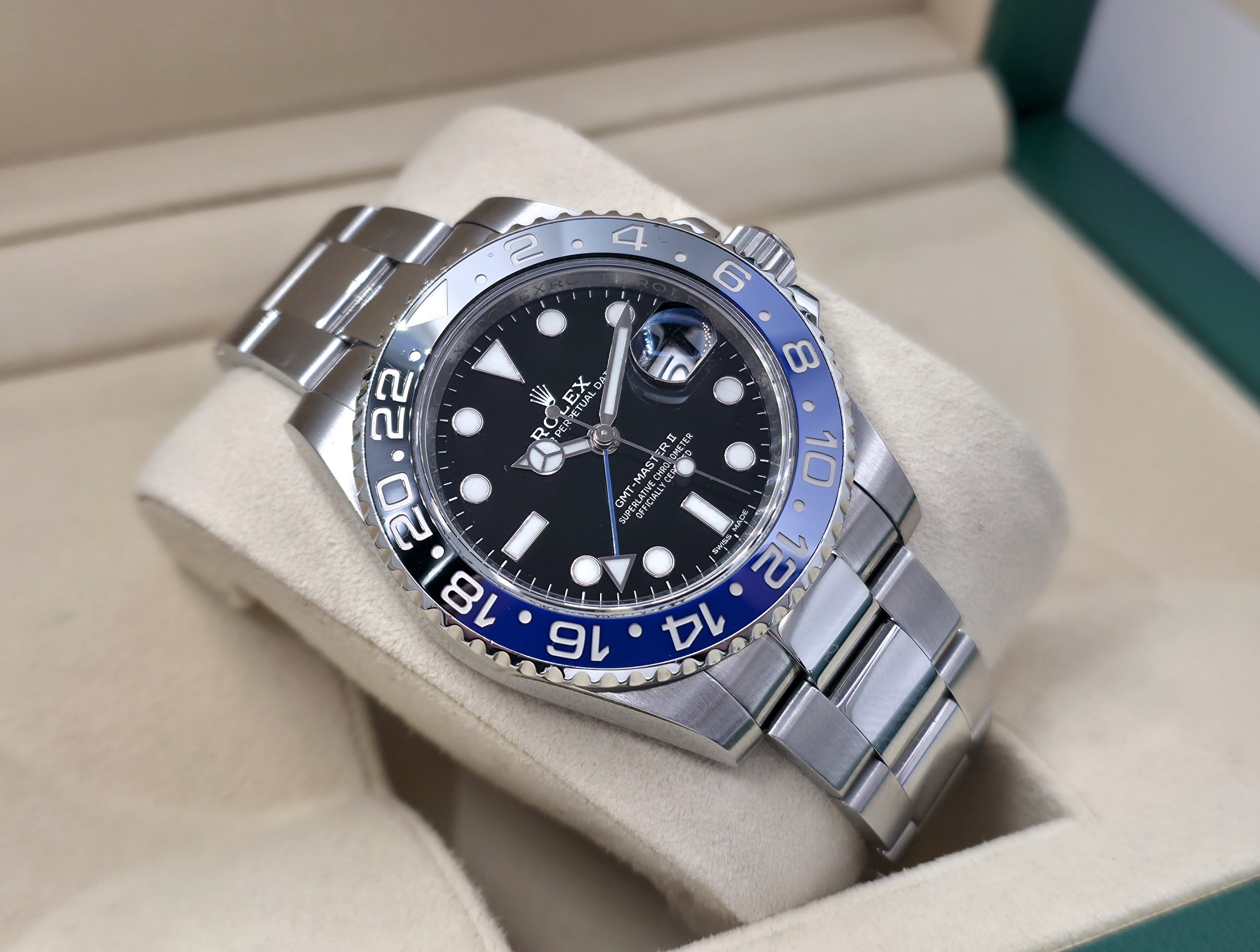 Hieno ja haluttu Rolex GMT-Master II Batman! Tyylikäs sinimustalla bezelillä oleva versio. Boksi, korttikotelo, kortti 12/2016. Käy erinomaisin arvoin. Tästä todella upea sportti Rolexi!