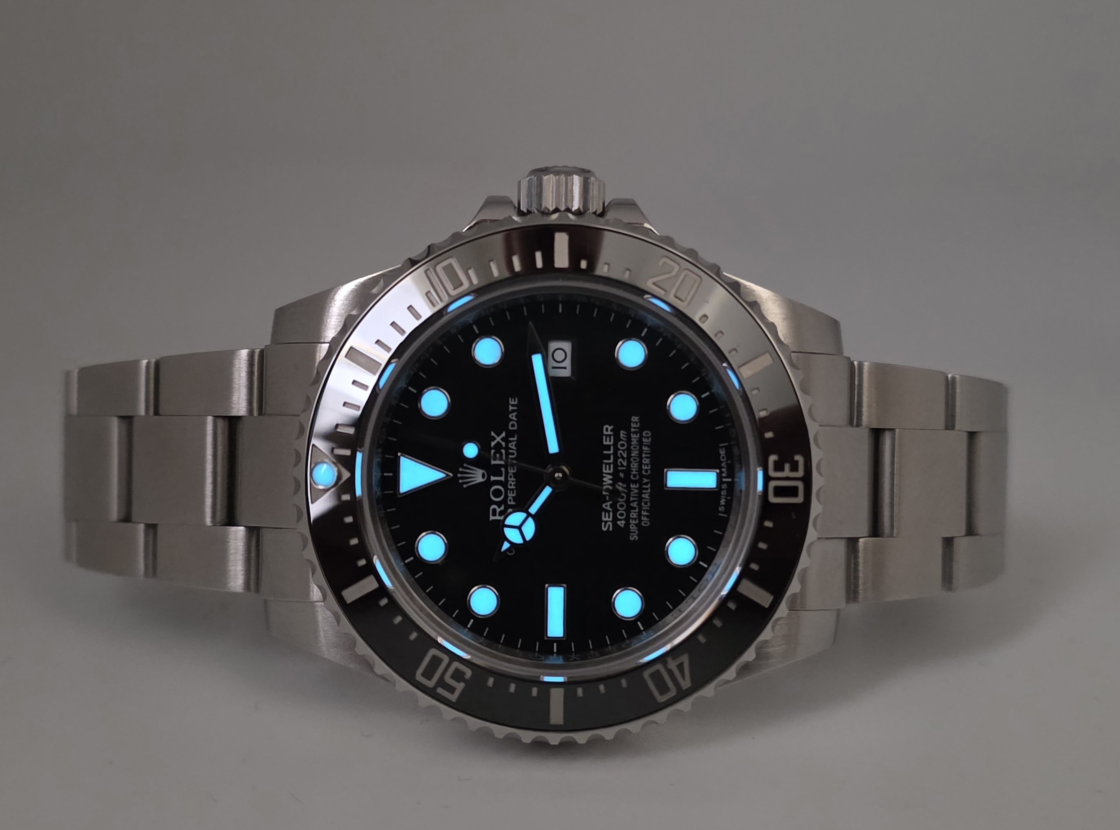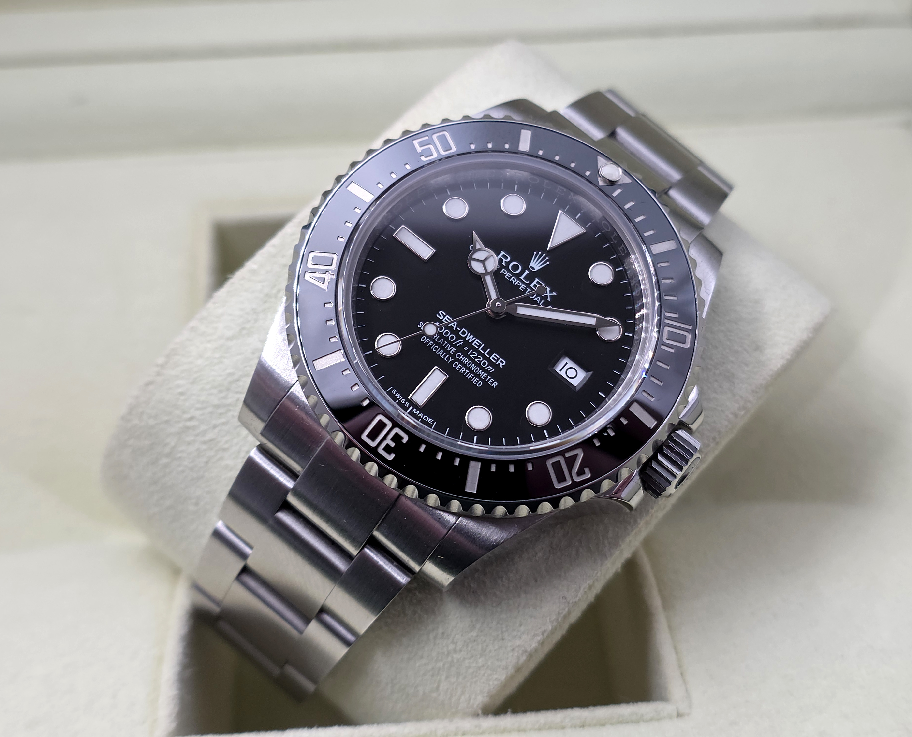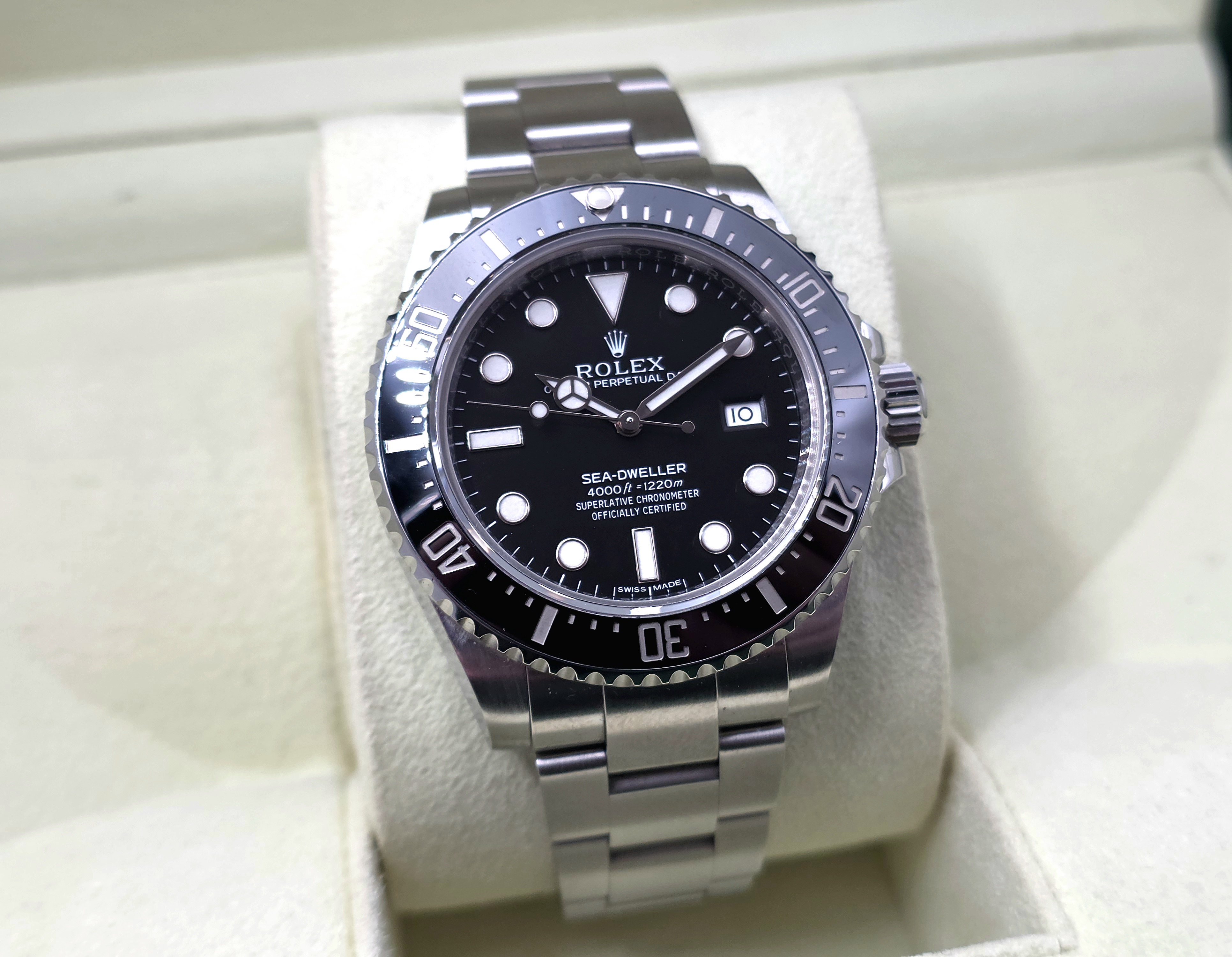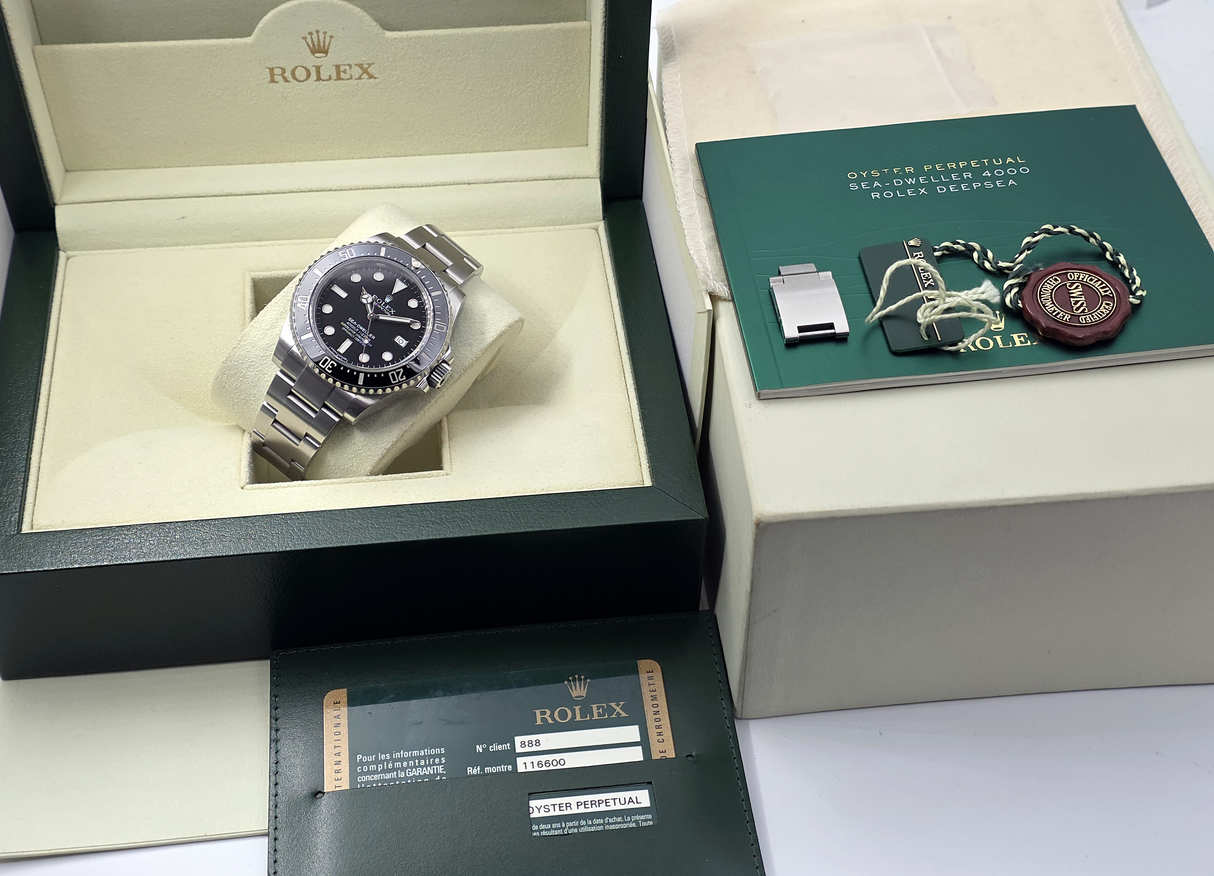 Rolexin harvinaisempi, vain 2014–2017 tuotannossa ollut keraamisella bezelillä varustettu 40 mm "SD 4000" (116600). Full set 08/2014. Käynti erinomainen. Tästä erittäin onnistunut, harrastajien keskuudessa hyvin pidetty tuotannosta poistunut malli!
