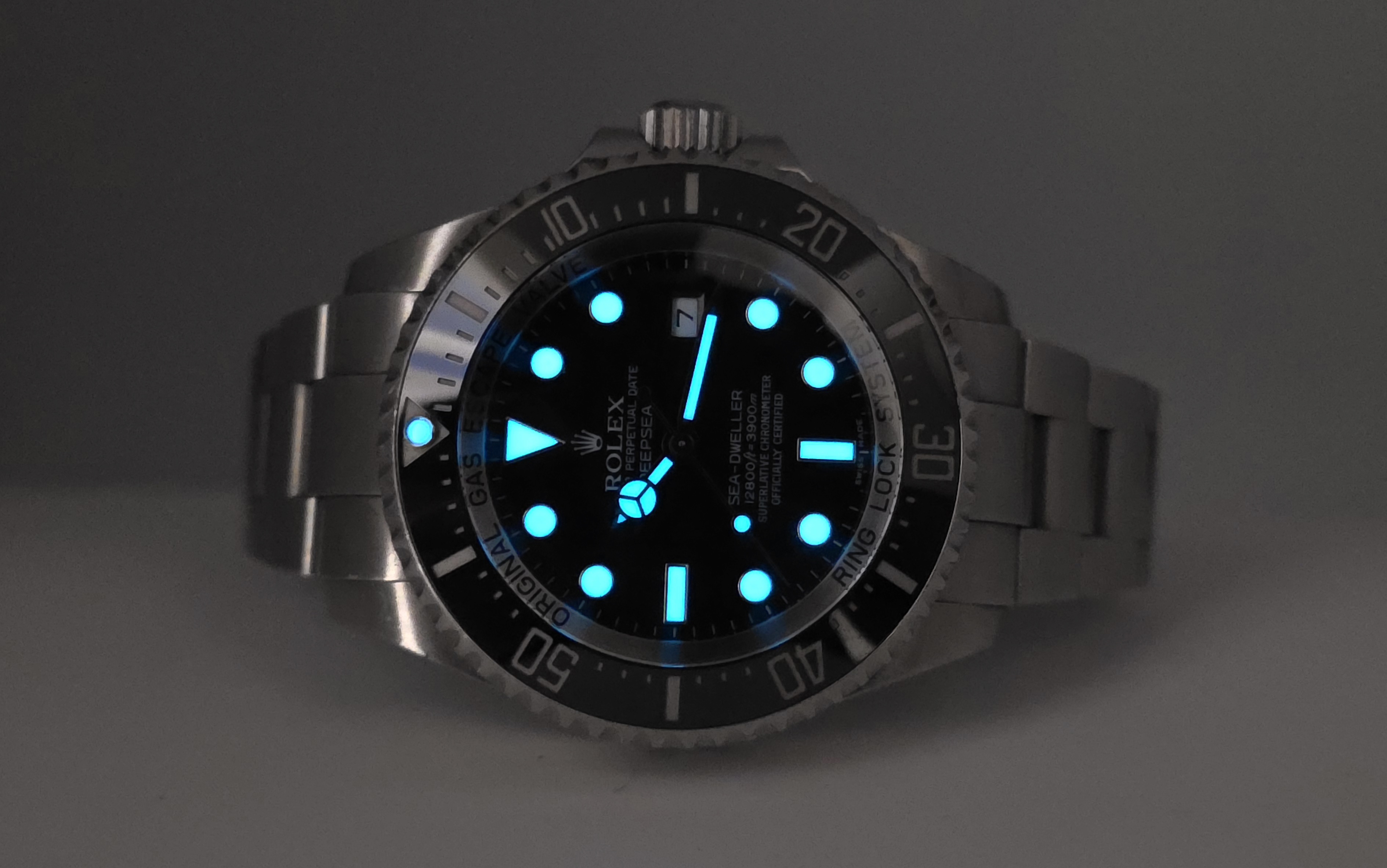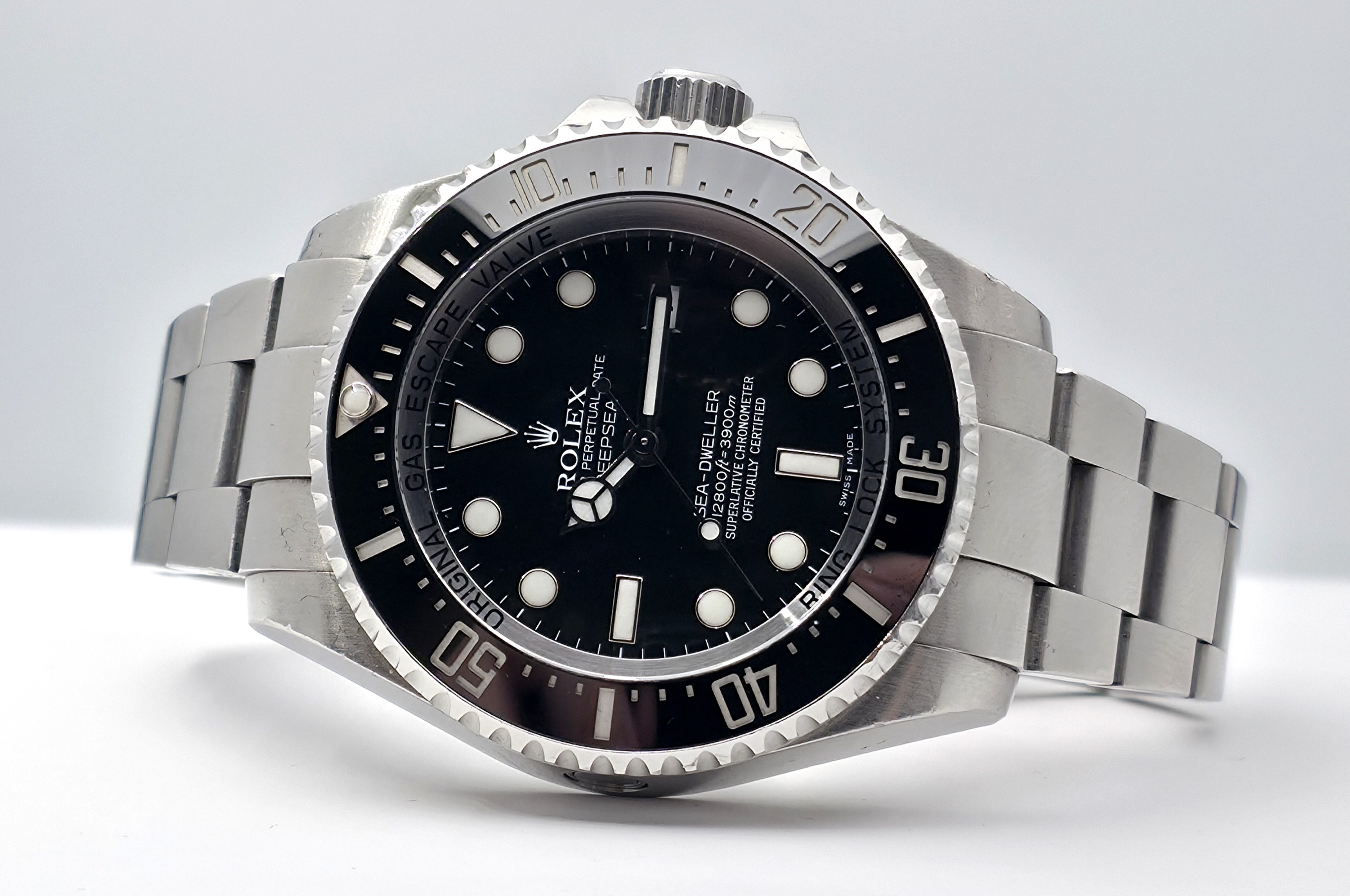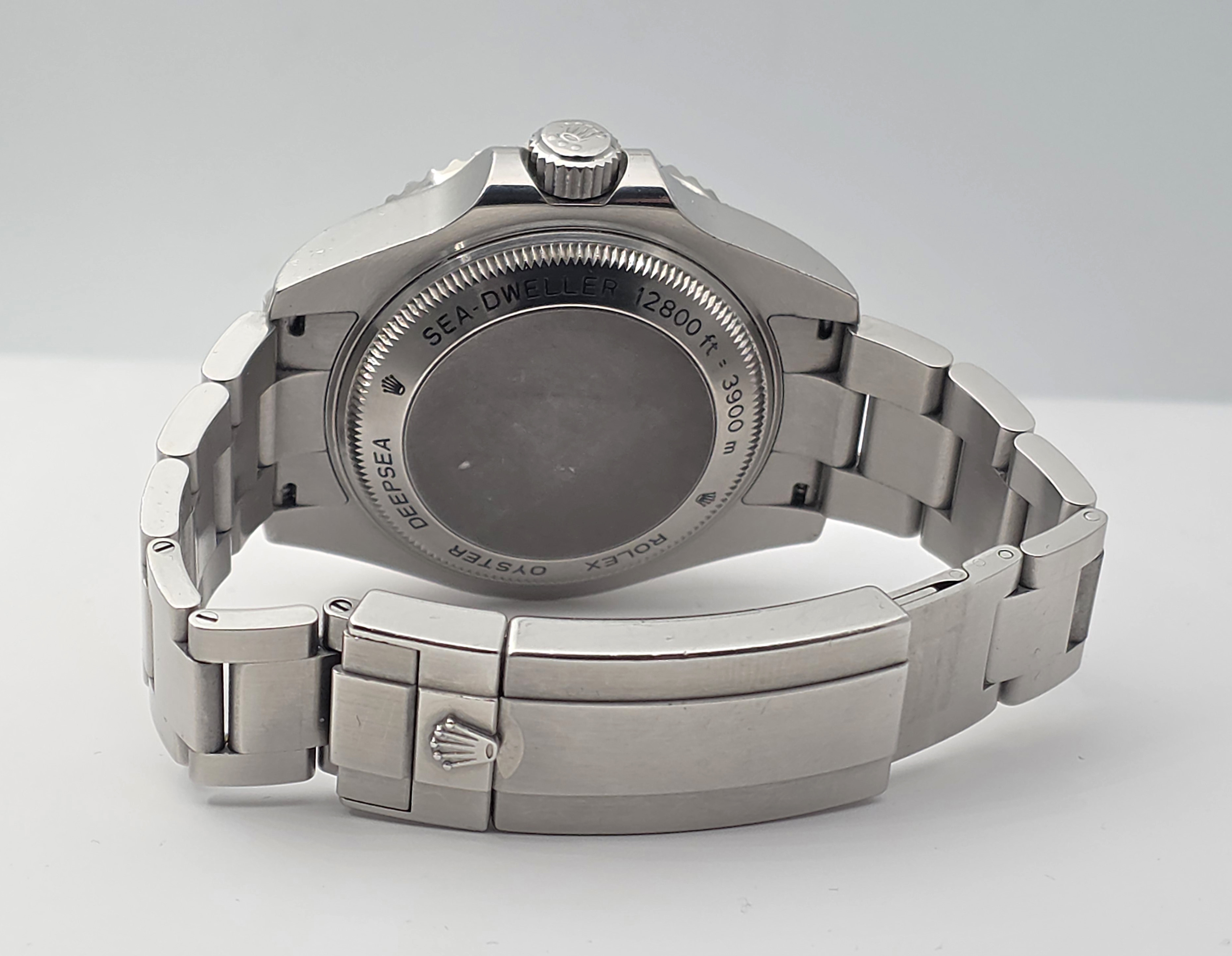 Rolexin järeä Deepsea. Mukaan boksi, manuaali, tagi ja 2010 päivätty takuukortti. Aktiivisessa käytössä ollut ja käytönjälkeä löytyy, tämä yksilö ei ole heille jotka etsivät naarmutonta. Lasi ja bezeli tosi siistit, käynti erinomainen. Tästä edullisesti huippuominaisuuksilla varustettu diveri, jossa mm. wr. 3900m, upea lume ja erinomainen Glidelock pikasäätö!