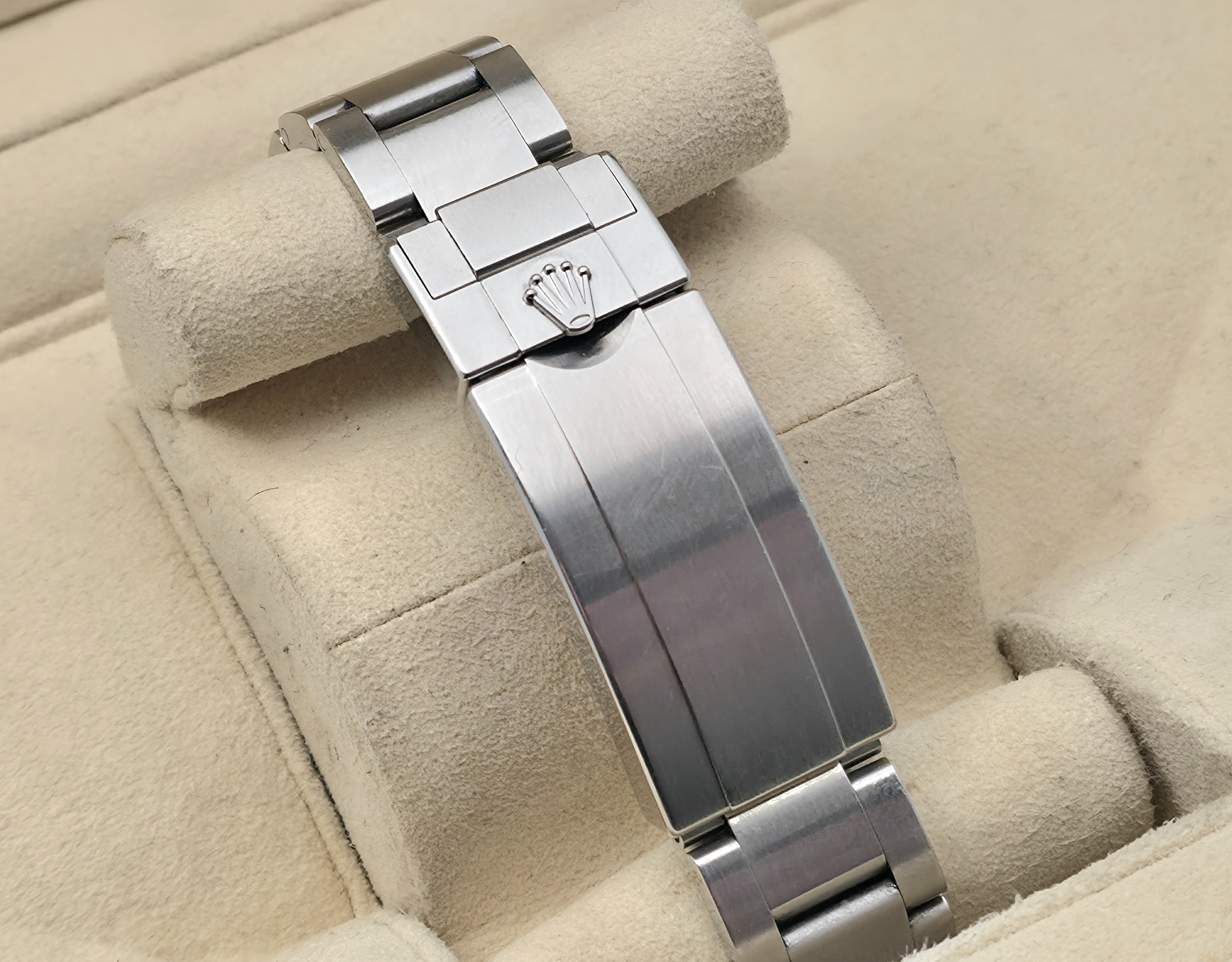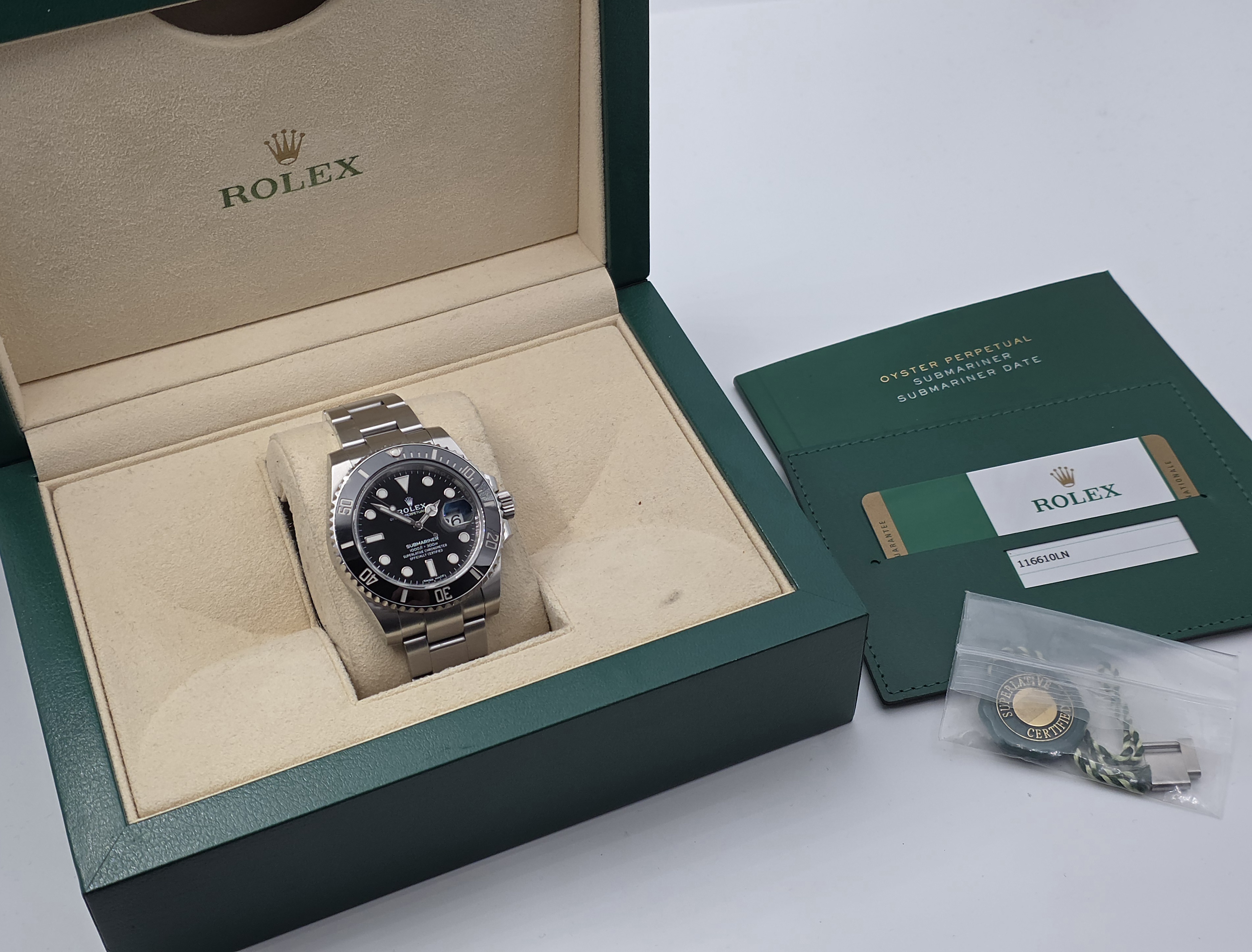 Rolexin erittäin haluttu klassikkomalli, Submariner Date. Siistikuntoinen yksilö, tuotannon loppupäästä. takuukortti on päivätty 05/2020. Kokonaisuus sisältää täyden setin lukuun ottamatta boksin ulkopahveja. Kellon käyntitarkkuus on erinomainen. Kyseessä on ikoninen malli, joka soveltuu erinomaisesti monipuoliseen käyttöön.