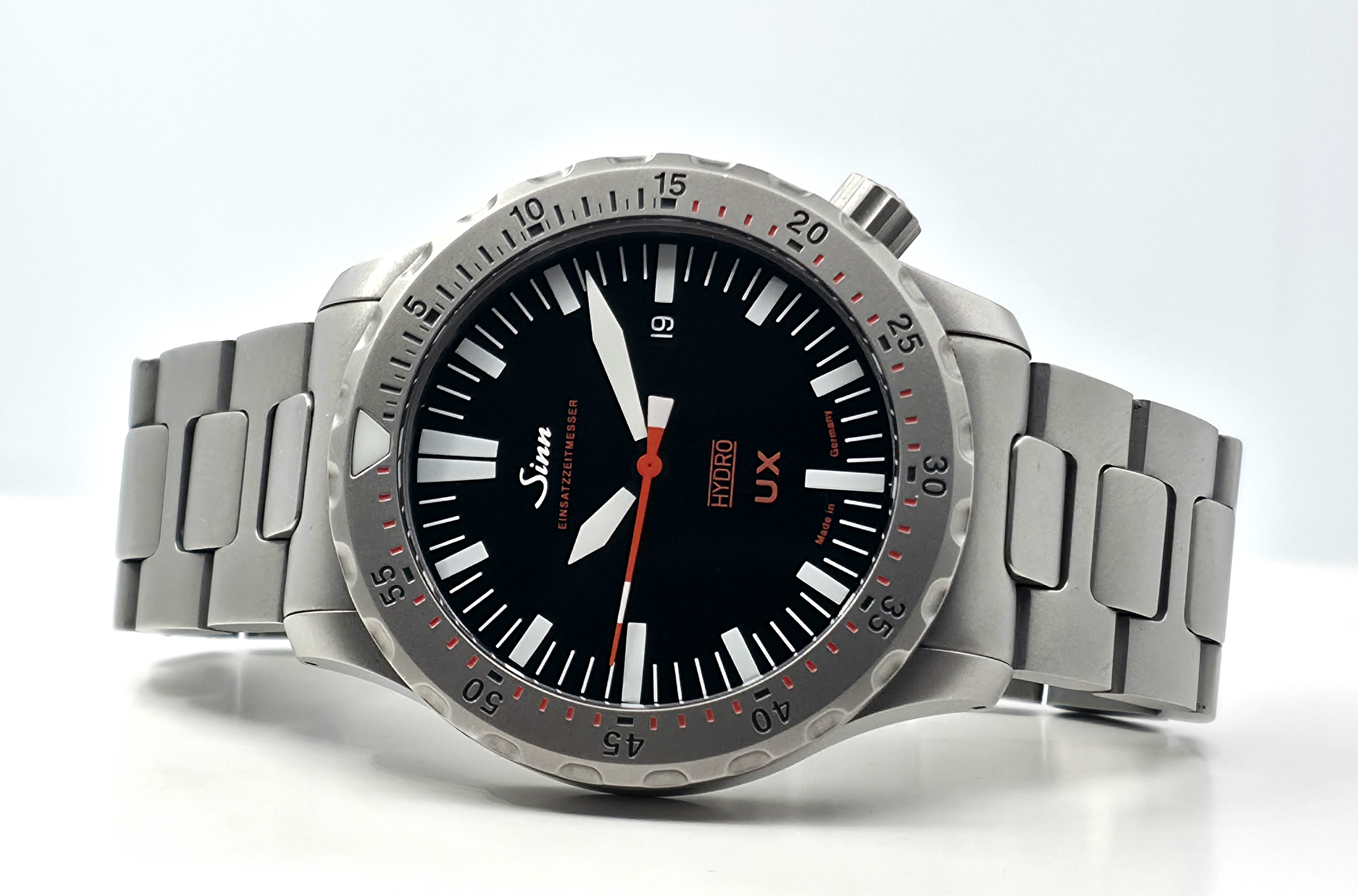 Sinn.in Huippu diveri, UX Hydro! Todella kovilla ominaisuuksilla varustettu työkalu! Sukellusveneterästä oleva malli, Tegimentoidulla bezelillä, mikä tekee siitä lähes naarmuuntumattoman. Painetta kello kestää huikeat 5000m. Fullset 08/2017 tehdashuolto 09/2024 asti. Ovh. 2700e