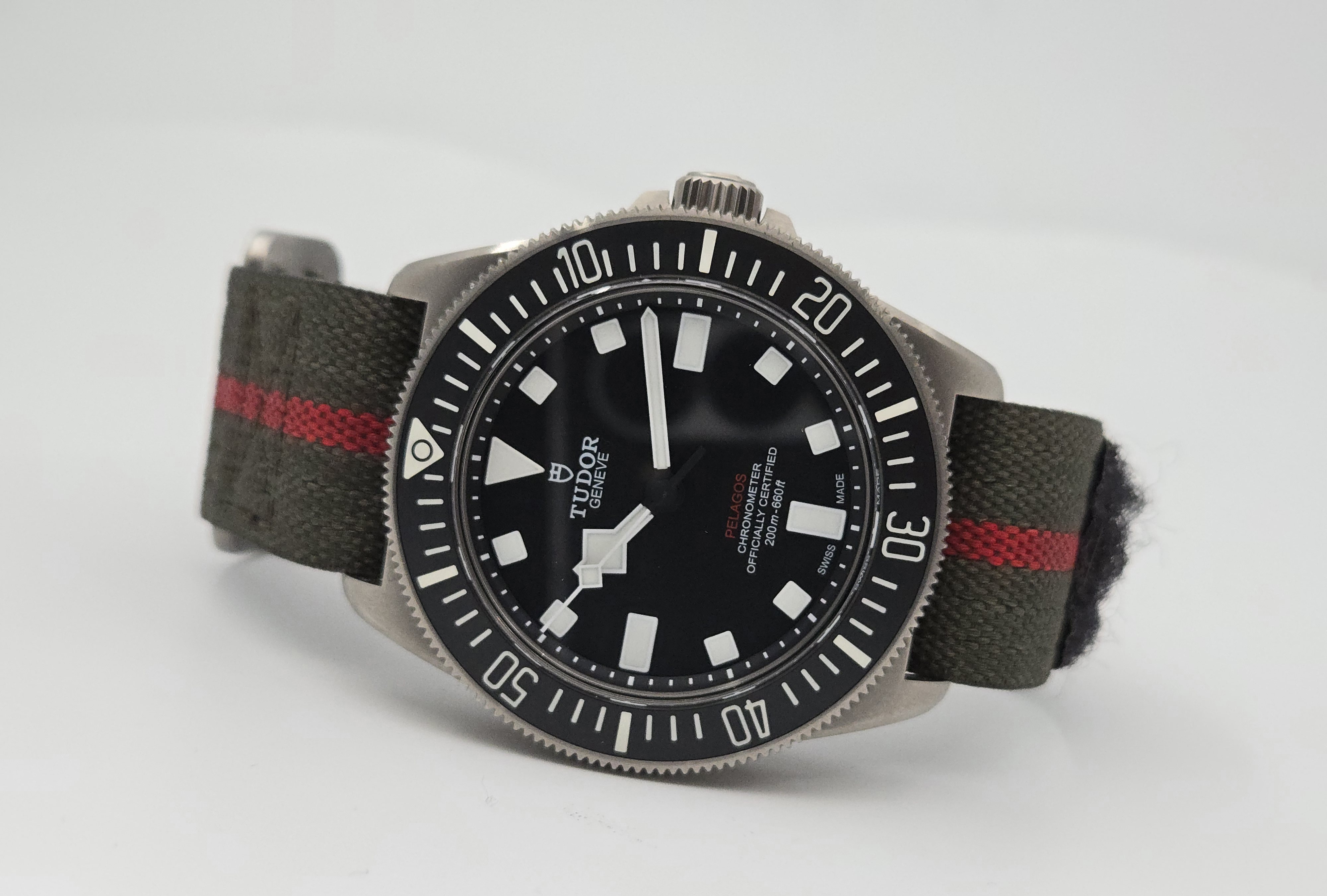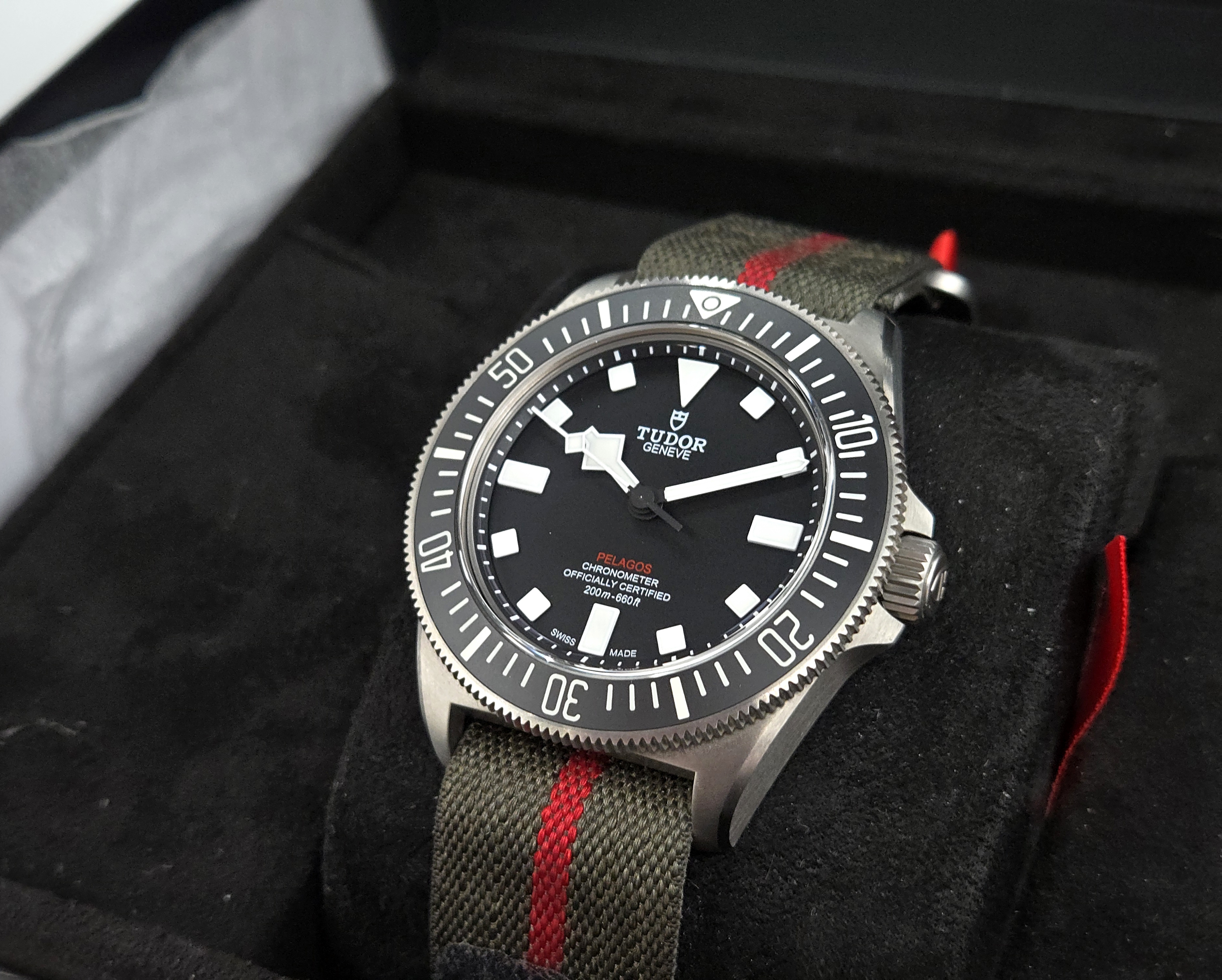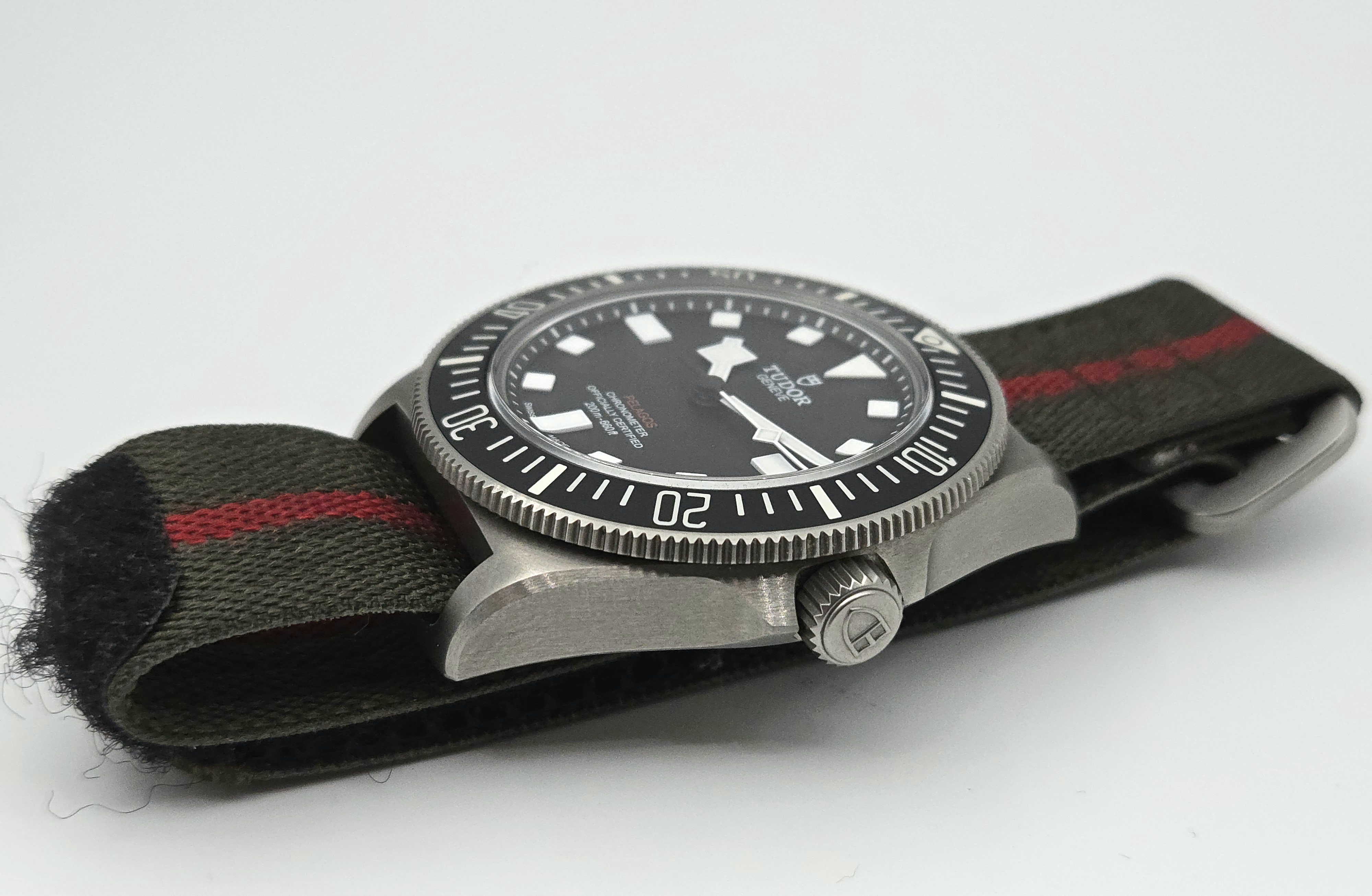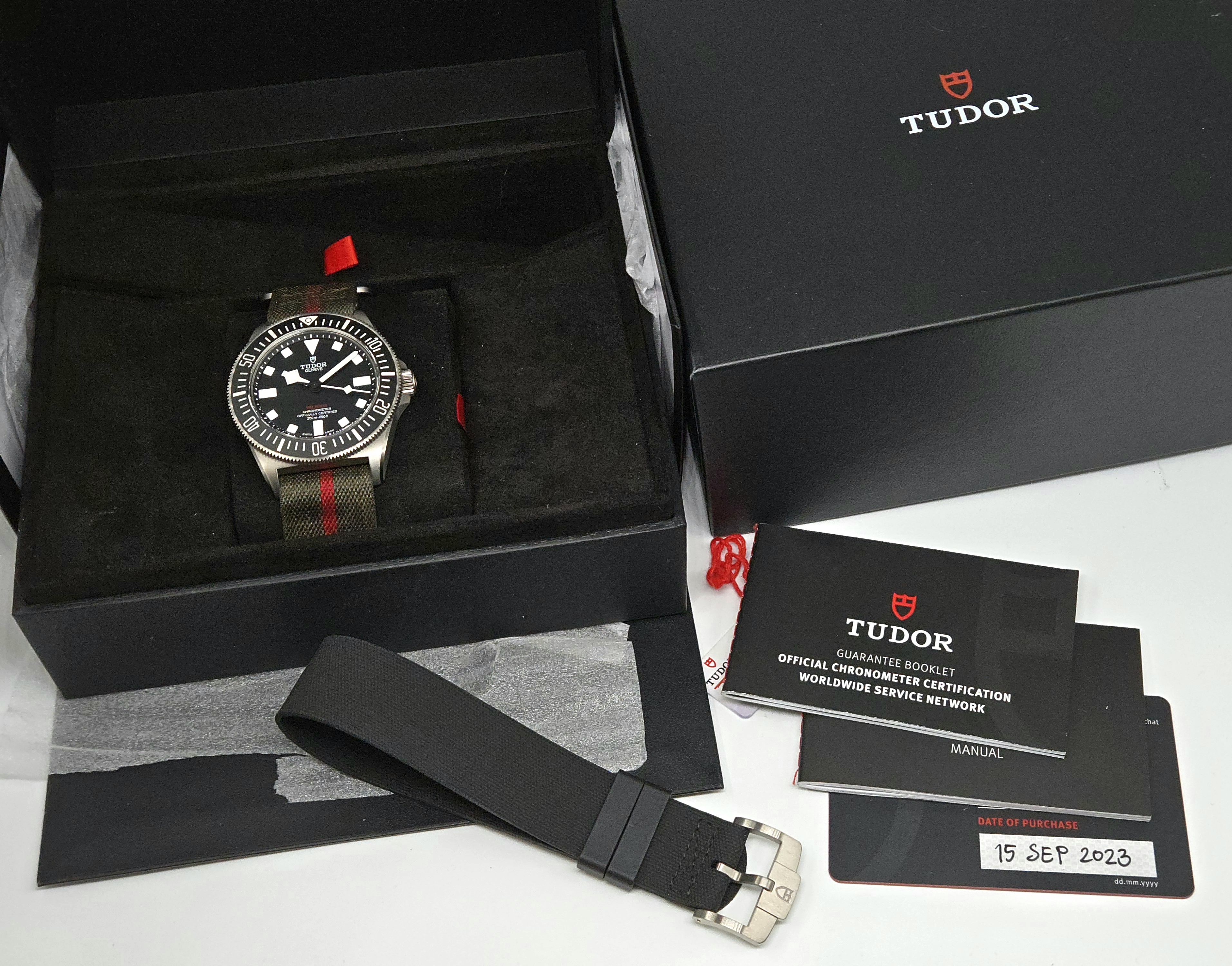 Upea Tudorin Pelagos FXD 42mm Fullset 09/2023, 5v tehdastakuu. Setissä Tudorin kangas ja kumirannekkeet. Huippuominaisuuksilla ladattu sporttinen malli, josta löytyy mm. titaaninen koppa ja bezeli, 200m wr, 70h käyntivaran in-house mylly ja todella upea lume (myös bezelissä). Erittäin kevyt ja mukava ranteessa. Ovh. 4550e