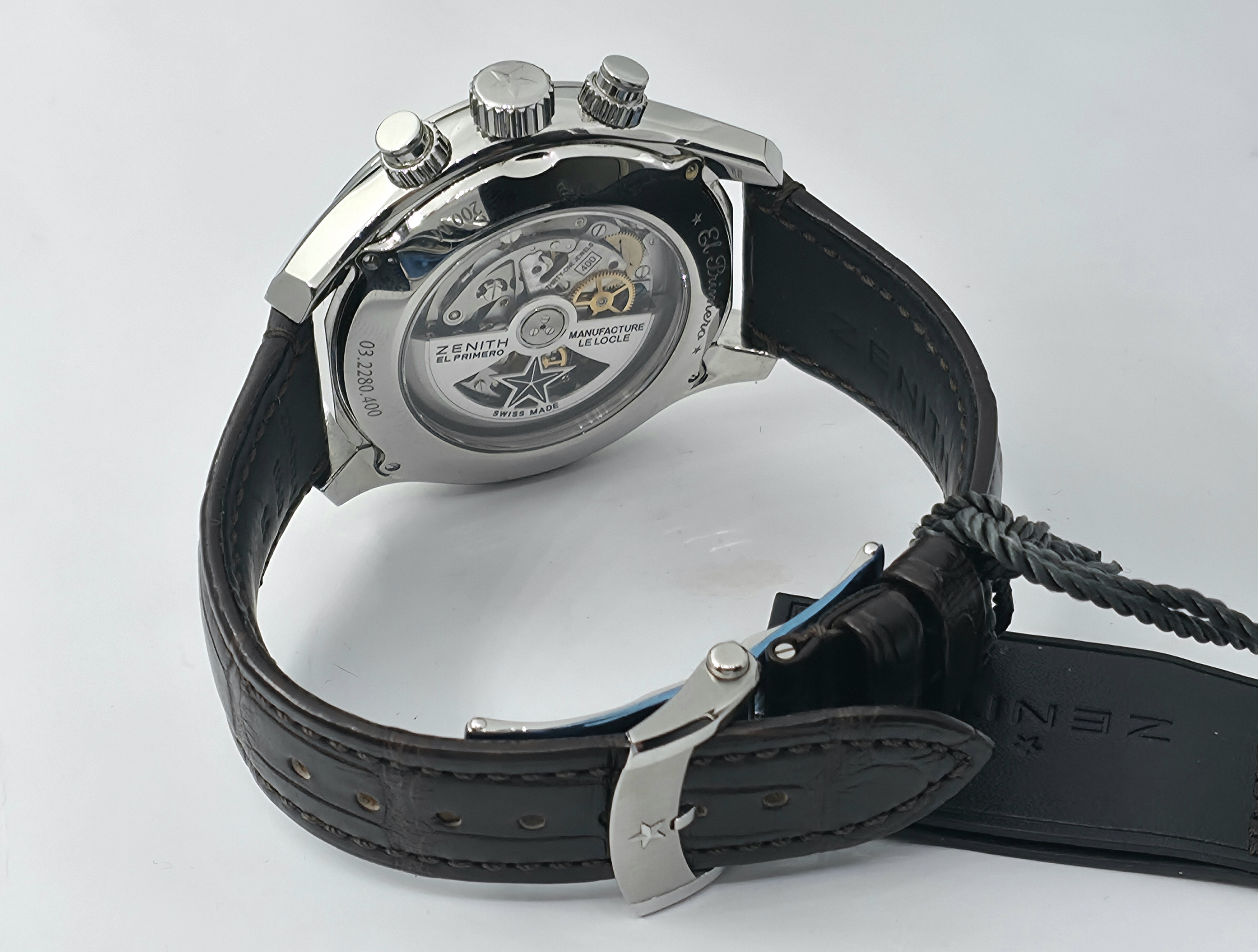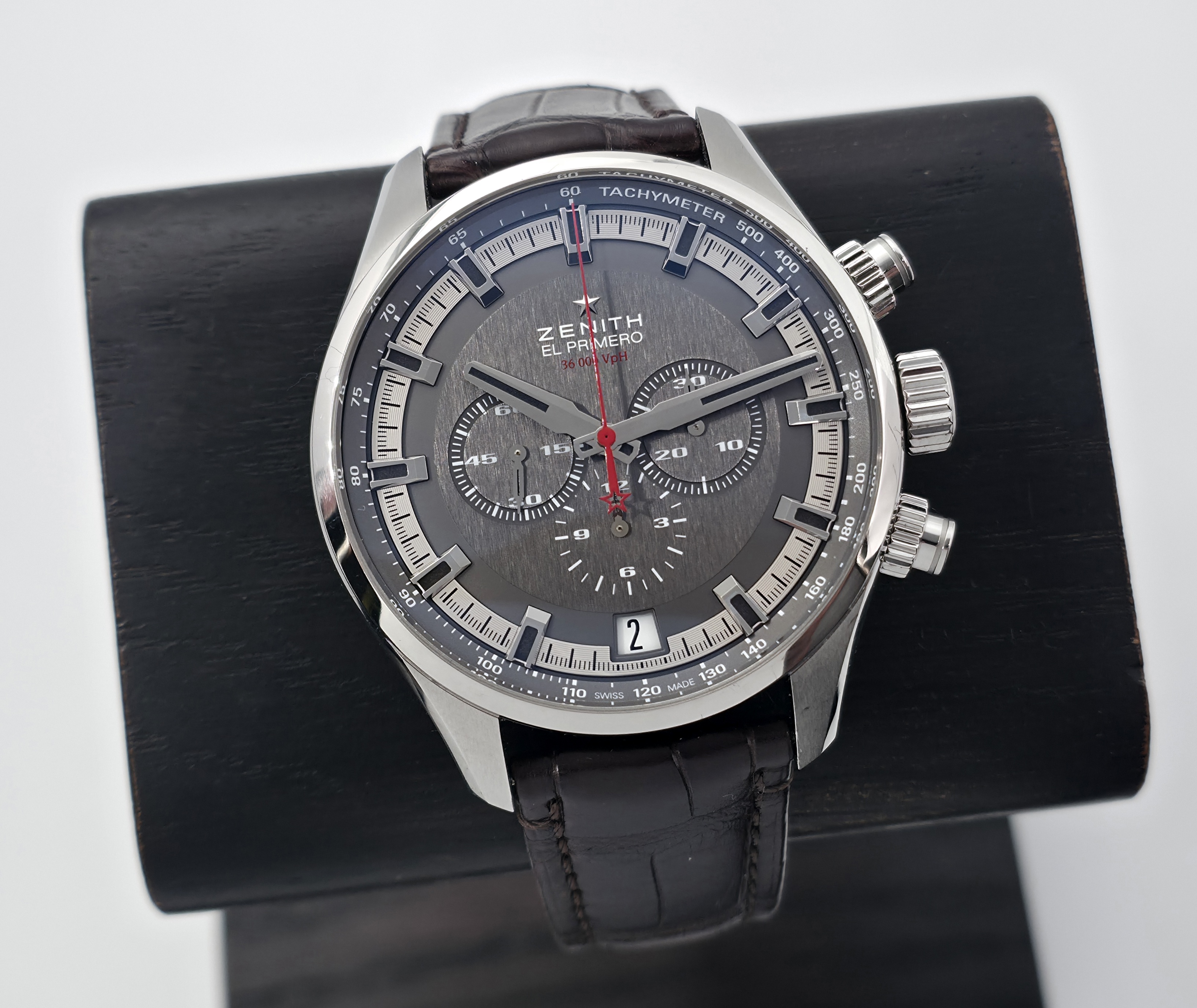 Erittäin näyttävä Zenith El Primero Sport. Kyseessä on 45 mm malli, jossa on upea harjattu harmaa kellotaulu ja ikoninen El Primero 400 -koneisto. Kellon mukana tulee alkuperäinen nahkaranneke linkkulukolla (käyttämätön) sekä erikseen hankittu mallin oma teräsranneke. Lindroosilta 05/2023 ostettu fullset. Ovh. 9700e